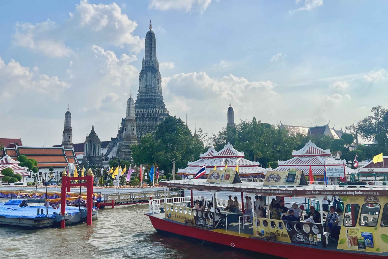 Sightseeing-krydstogt langs Chao Phraya-floden Billetter til krydstogtet Besøg i Wat Arun (daggryets tempel) Udforskning af Wang Lang-markedet Naturskøn udsigt over Grand Palace fra båden Besøg på Pak Khlong Talat (blomstermarked) Vandring gennem Chinatown-området Udsigt til Icon Siam fra båden Drikkevand og thailandske snacksImportant Information