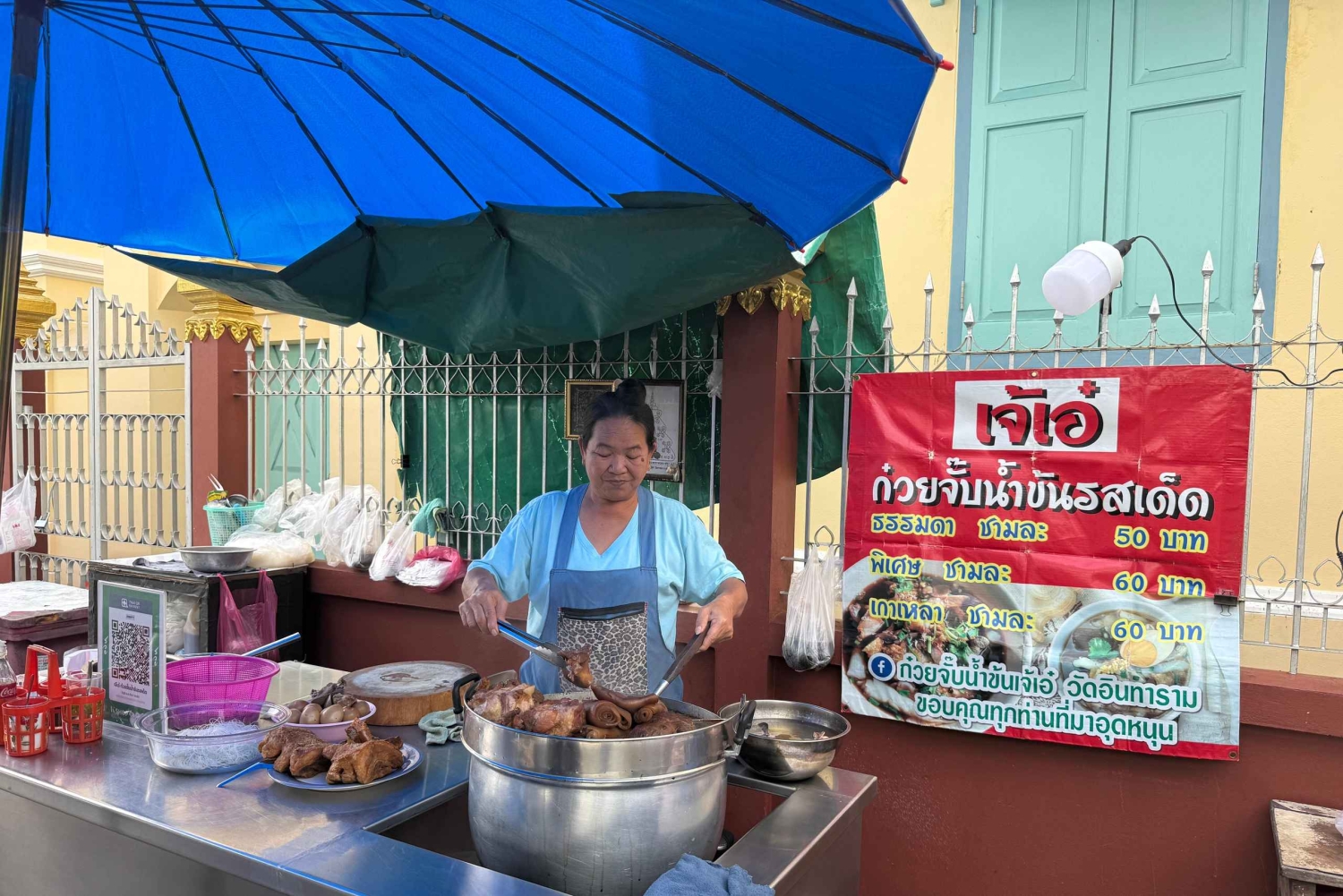 Træd ind i hjertet af Bangkoks old-school charme med en smagfuld rejse gennem Wongwian Yai og Talat Phlu. Din dag begynder med en afslappet vandring rundt i Wongwian Yai, før du hopper på et vintage tog – en klassisk Bangkok-oplevelse, der bringer dig ind i byens hverdagsrytme. Når vi ankommer til Talat Phlu, skal du gøre dig klar til et ægte gademadsfestmåltid. Dette kvarter er berømt for sine traditionelle smagsvarianter, og vi stopper ved lokale boder, hvor du bare skal prøve sprødt svinekød, traditionelle desserter, håndlavede nudler, aromatiske thai-kinesiske bidder og snacks, som kun de lokale kender til. Hvert hjørne afslører en ny smag, historie eller skjult butik, der er gået i arv gennem generationer. Når vi har fået nok af de bedste lokale smagsoplevelser, fortsætter vi til et fredeligt tempel, hvor du kan slappe af, udforske og nyde den traditionelle thailandske arkitekturs skønhed. Højdepunktet på rejsen er den ikoniske kæmpebuddha, hvor vi guider dig til de mest fotogene vinkler – perfekt til stilfulde, smarte billeder, der indfanger både kultur og personlighed. Denne tur blander mad, kultur, det daglige liv i Bangkok og unikke fotomuligheder, hvilket gør den ideel for rejsende, der ønsker at spise som en lokal, udforske ægte kvarterer og tage æstetiske billeder undervejs.Includes