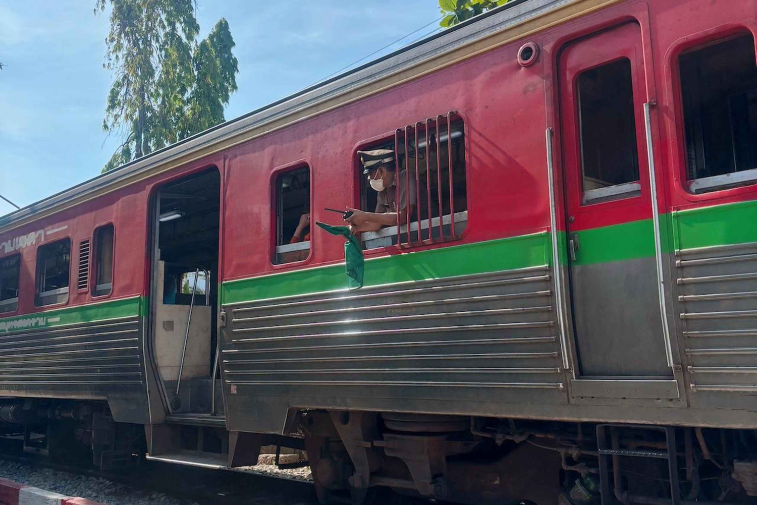 - Tag på eventyr, mens toget ankommer til Maeklong Railway Market.