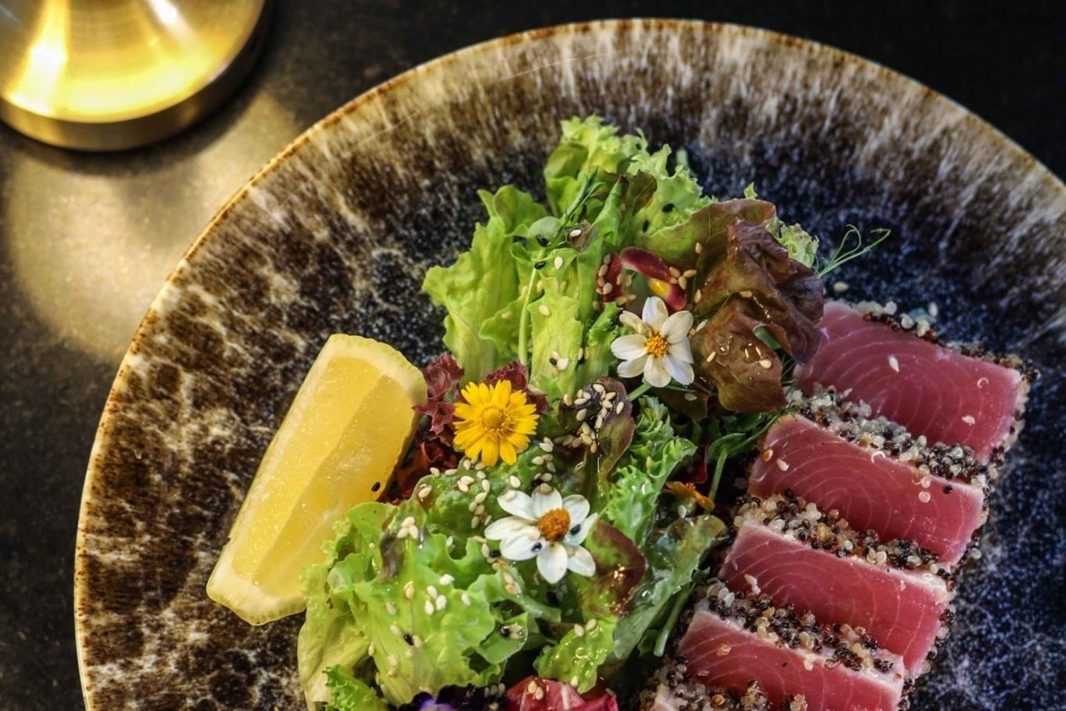 Erlebe das Nachtleben in der Axis & Spin Sky Lounge & Bar Rooftop, einem schicken und stilvollen Ort hoch über den belebten Straßen Bangkoks. Die Sky Lounge befindet sich auf dem Dach des Continent Hotels und bietet einen faszinierenden 360-Grad-Blick auf die Skyline der Stadt - der perfekte Ort, um zu entspannen und die Nacht zu genießen. Ganz gleich, ob du fachmännisch zubereitete Cocktails schlürfen, Live-Musik genießen oder einfach nur die atemberaubende Aussicht genießen möchtest, das Axis & Spin bietet eine lebendige und zugleich anspruchsvolle Atmosphäre. Die Speisekarte des Axis & Spin bietet eine kuratierte Auswahl an innovativen Getränken und Gourmet-Häppchen für den gehobenen Geschmack. Die Bar ist bekannt für ihre charakteristischen Cocktails, die klassische Geschmacksrichtungen mit modernen Akzenten verbinden und die besten Spirituosen und frischesten Zutaten verwenden. Passend zu den Getränken gibt es eine Auswahl an köstlichen kleinen Tellern und Vorspeisen, die du mit Freunden teilen oder als leichte Mahlzeit genießen kannst. Die moderne Einrichtung der Lounge und das Design unter freiem Himmel schaffen einen einladenden Raum, in dem du dich entspannen, Kontakte knüpfen und die atemberaubenden Sehenswürdigkeiten von Bangkok bei Nacht genießen kannst. Um deinen Abend zu verschönern, bieten wir exklusive Pakete an, die ein außergewöhnliches Preis-Leistungs-Verhältnis bieten und gleichzeitig die hohe Qualität bieten, für die Axis & Spin bekannt ist. Diese Pakete sind so konzipiert, dass sie eine Auswahl der beliebtesten Angebote der Lounge enthalten, damit du ein erstklassiges Erlebnis genießen kannst, ohne dass du dafür einen hohen Preis zahlen musst. Egal, ob du einen besonderen Anlass feierst oder einfach nur einen stilvollen Ort zum Entspannen suchst, die Pakete der Axis & Spin Sky Lounge & Bar Rooftop bieten dir ein hochwertiges, exklusives Erlebnis, das Luxus mit Wertigkeit verbindet. Tauche ein in die dynamische Energie des Bangkoker Nachtlebens im Axis & Spin, wo jeder Besuch ein Fest des Stils, des Geschmacks und des Panoramablicks ist.Includes