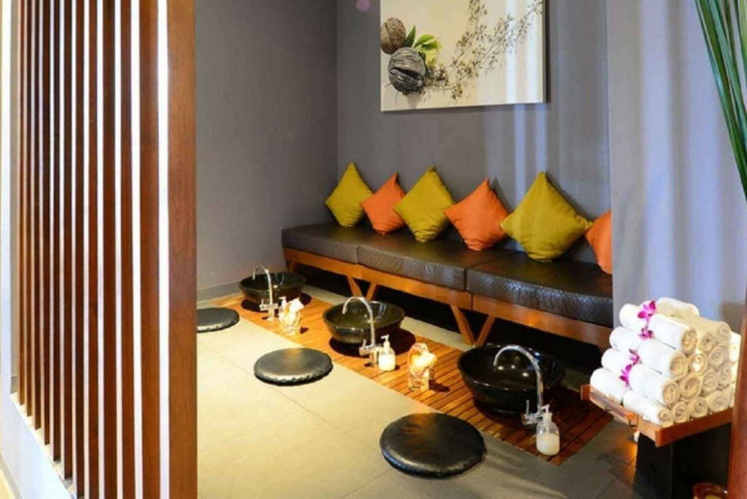 Das Let's Relax Siam Square One liegt in Bangkoks belebtem Einkaufszentrum und ist eine Oase für Einheimische und Touristen. Direkt an der BTS Siam Station im 6. Stock des Park at Siam Square 1 Mall gelegen, bietet es einen ruhigen Rückzugsort für alle, die sich verwöhnen lassen wollen. Verwöhne dich mit einer traditionellen Thai-Massage, einer Aromaöl-Massage oder einem Spa-Paket von professionell geschultem Personal. Das Spa ist in einem modernen Stil mit beruhigenden grauen Erdtönen gestaltet und verfügt über typische östliche Akzente wie geflochtenes Rattan und Teakholz, die sich mit modernen Kurven und Materialien vermischen und den schicken Charakter des Einkaufszentrums widerspiegeln. Die Behandlungsräume sind in Grautönen gehalten, die durch lebendige Blumenbilder akzentuiert werden und eine ruhige und einladende Atmosphäre schaffen. Bist du bereit für ein umfassendes Verwöhnerlebnis? Buche deine Thai-Massage, Hot Stone Massage, Gesichtsentspannung oder Körperpeeling jetzt online bei Let's Relax Siam Square One.Includes