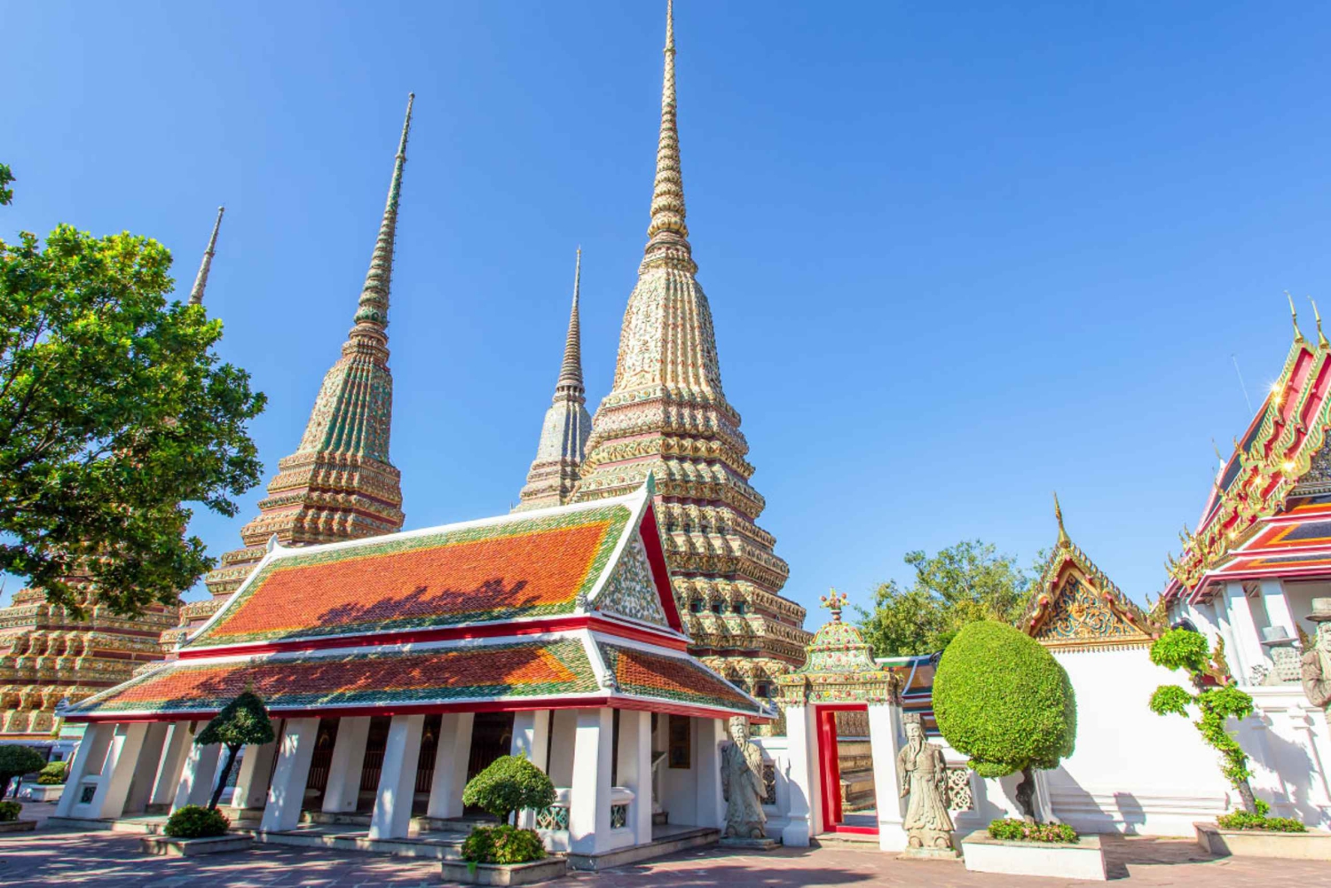Begib dich auf eine fesselnde Tempeltour in Bangkok, die mit einem bequemen Treffen im Maharaj-Tunnel beginnt. Um 8:45 Uhr erreichst du den prächtigen Wat Phra Sri Rattana Satsadaram, auch bekannt als Wat Phra Kaew, wo du die atemberaubende Schönheit des Smaragdbuddhas und die komplizierten Details der Tempelarchitektur bewundern kannst. Um 11:00 Uhr geht es dann weiter zum Wat Phra Chetuphon Vimolmangklaram, auch Wat Pho genannt, der für seine riesige liegende Buddha-Statue bekannt ist. Erkunde das friedliche Gelände des Tempels und entdecke die exquisite Handwerkskunst, die die Umgebung schmückt. Um 13:00 Uhr fährst du mit einem Shuttle-Boot zum Wat Arun, dem Tempel der Morgenröte, der am Chao Phraya Fluss liegt. Genieße die malerische Fahrt, während du dich dem Tempel näherst, der für seine atemberaubenden Türme und komplizierten Porzellanverzierungen bekannt ist. Um 13:30 Uhr tauchst du in die Schönheit des Wat Arun ein und erfährst mehr über seine faszinierende Geschichte und Bedeutung. Beende deinen Tag mit schönen Erinnerungen an diese ikonischen Tempel und das reiche kulturelle Erbe Bangkoks.Includes