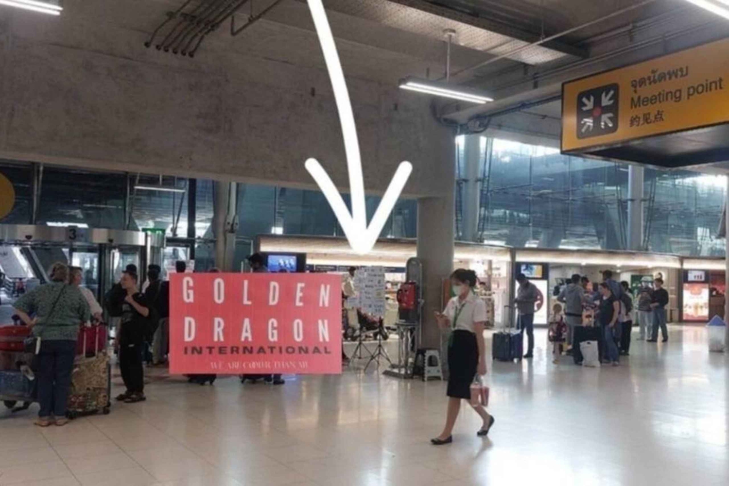 - Abholen: - Sobald du am Flughafen Suvarnabhumi (BKK) ankommst, gehst du bitte zum Gate 3. Unser Flughafenmitarbeiter wird ein Schild mit deinem Namen in der Hand halten und dich zu deinem reservierten Fahrzeug bringen. - Wenn du am Don Mueang International (DMK) Flughafen ankommst, gehe bitte zum Gate 5. Unser Flughafenmitarbeiter wird ein Schild mit deinem Namen in der Hand halten und dich zu deinem reservierten Fahrzeug bringen. - Für den Flughafentransfer von deinem Hotel zum Flughafen berücksichtige bitte die Verkehrsverhältnisse. Die Abfahrtszeit vom Hotel sollte 3-4 Stunden vor deiner Flugzeit liegen.
