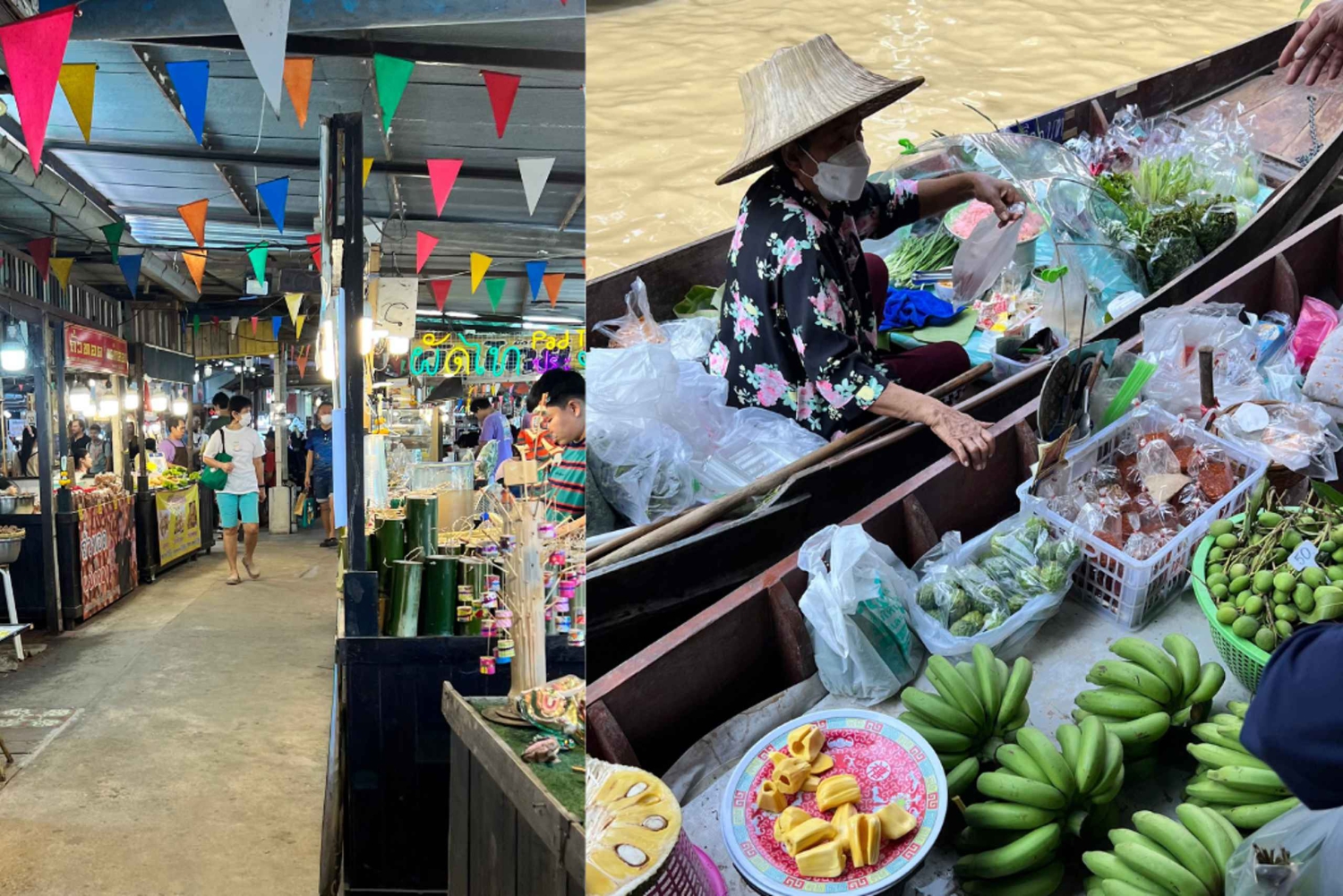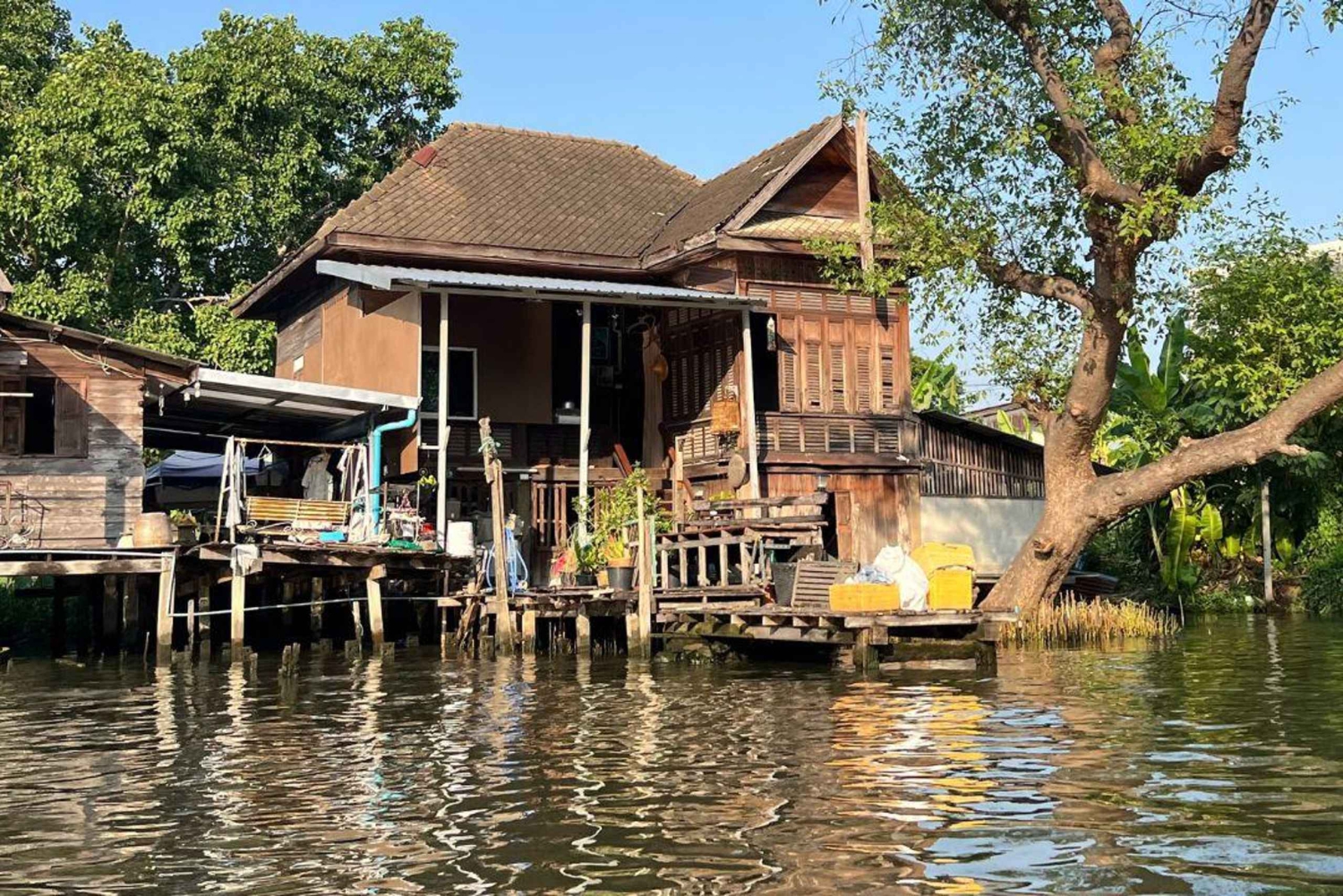 ¡Empieza tu excursión privada de 3 horas en barco plano tradicional tailandés por los canales ocultos de Bangkok! Navega por los pequeños canales del lado oeste, descubre la apacible vida ribereña y explora el animado Mercado Flotante de Khlong Lat Mayom con una parada de 1 hora. Personaliza tu viaje: elige el punto de desembarque y decide si prefieres un viaje autoguiado o añadir un guía titulado para vivir una experiencia más profunda. *Este recorrido sólo está disponible los fines de semana.* Lo más destacado: ⏺ Punto de encuentro: Comienza en Wat Mai Yai Nui (Wutthakat 24) en Thonburi. ⏺ Crucero por Khlong Dan: Este canal, que fue un peaje histórico desde el periodo de Sukhothai a Ayutthaya, era el lugar donde se recaudaban los impuestos de los barcos comerciales extranjeros. Por el camino, admira una mezcla de casas antiguas y modernas y templos históricos. ⏺ Las vistas de los 2 Budas Gigantes: En Khlong Dan, divisa dos grandes estatuas de Buda -Wat Pak Nam a la izquierda y Wat Khun Chan a la derecha- con un histórico edificio escolar de 1923 cerca, recuerdo de la II Guerra Mundial. Wat Pak Nam Phasi Charoen: Este hermoso templo del periodo Ayutthaya parece una pequeña isla. Contempla la impresionante estatua de Buda de 69 metros de altura, la más alta de Bangkok, y la hermosa Gran Pagoda con su Pagoda de Cristal Esmeralda que contiene una reliquia sagrada de Buda. ⏺ Comunidad del Canal de Bang Luang: Descubre esta encantadora comunidad, que antaño fue un bullicioso mercado y ruta comercial. No te pierdas la Casa del Artista, una antigua casa de madera de la época de Ayutthaya, ahora un espacio creativo centrado en torno a una antigua estupa. ⏺ Dar de comer a los peces del canal: Vive una significativa tradición tailandesa dando de comer a los peces del canal. Se cree que este sencillo acto de dar, conocido como 'hacer méritos', trae buena suerte, buena salud y una larga vida. ⏺ Más rutas por los canales: Explora canales laterales como Bang Waek, Bang Chuek Nang y Sanam Chai. Sé testigo de la vida tradicional ribereña, desde las viejas casas de madera en las que aún se vive hasta las abandonadas, todavía bellas en su encanto añejo. ┏━━━━━┓ ✦ Parada de 1 hora ✦ ┗━━━━━┛ En el Mercado Flotante de Khlong Lat Mayom, un animado mercado ribereño que combina puestos en tierra y en el agua, ofrece una gran variedad de alimentos locales y tradicionales, productos frescos de los agricultores locales y recuerdos únicos. ⏺ Flexible Drop-off: Después de la excursión, puedes elegir dónde terminar: en un templo, en un mercado o de vuelta a una estación de BTS o MRT. ¡Sólo tienes que decirle al conductor de tu barco lo que prefieres! _____________________ Opciones adicionales: ✔︎ ¿Quieres un guía? Añade uno de nuestros guías certificados para una experiencia más profunda. ✔︎ ¿Autoguiado? Te enviaremos la información del recorrido y una guía en línea para que estés listo para explorar. ✔︎ ¿Prefieres sin paradas? También puedes solicitar un crucero sin paradas y simplemente disfrutar del viaje. ✆ Te proporcionaremos los detalles del recorrido, instrucciones sobre el punto de encuentro y asistencia en taxi por WhatsApp o correo electrónico, según la información de contacto que nos hayas facilitado.Includes