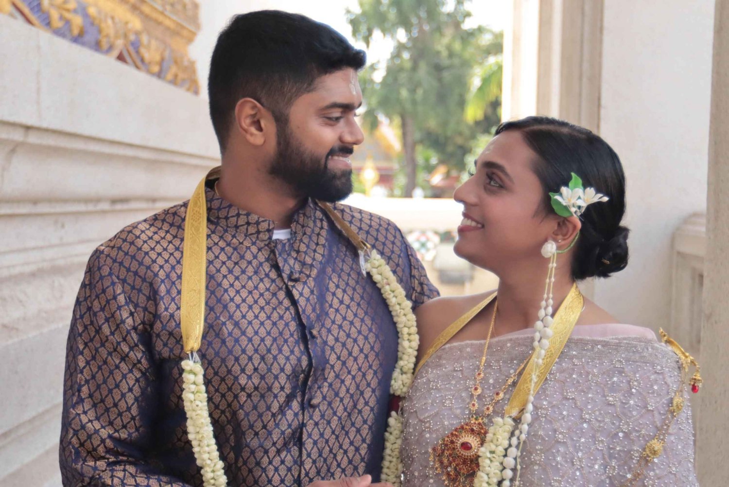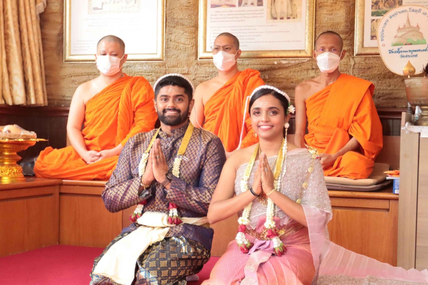 Vive una auténtica ceremonia de boda budista en un hermoso templo tailandés. Recibe las bendiciones sagradas de los monjes y participa en una ceremonia de boda tradicional tailandesa. La ceremonia nupcial es muy importante para los budistas. El propósito de esta ceremonia es desear a la pareja de novios una vida feliz. La pareja de novios encenderá incienso y velas y rezará. Después, los monjes darán las lecturas y bendecirán el agua para la ceremonia. Una vez que la pareja haya dado comida y ofrendas a los monjes, éstos rezarán y rociarán agua bendita para atraer la suerte a la pareja. Tras la ceremonia, participa en una sesión de fotos alrededor del templo.Includes