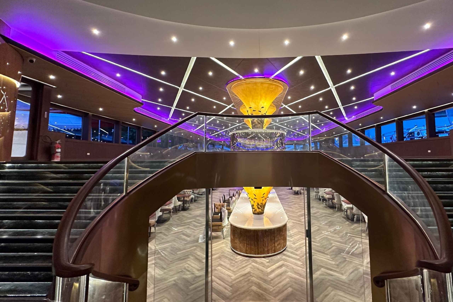 Embárcate en un crucero inolvidable a bordo del Crucero Opulencia, zarpando del ICONSIAM. Disfruta de un suntuoso bufé con una deliciosa variedad de platos tailandeses, internacionales y de marisco. Maravíllate con el vanguardista diseño interior y disfruta de las impresionantes vistas de 360 grados desde los asientos de la azotea. Deléitate con una bebida de bienvenida, café, té y agua a raudales mientras te entretienes con música en directo. Mientras navegas por el emblemático río Chao Phraya, sumérgete en el impresionante horizonte de Bangkok iluminado contra el cielo del atardecer. Para mayor comodidad, ofrecemos un servicio conjunto de traslado de ida y vuelta desde los hoteles de Bangkok (zona designada). Sólo tienes que indicarnos los datos de tu hotel al hacer la reserva y organizaremos un cómodo traslado de ida y vuelta al embarcadero. El Crucero Opulence ofrece una experiencia verdaderamente lujosa, que combina una cocina exquisita, un ambiente elegante y unas vistas impresionantes. Tanto si celebras una ocasión especial como si simplemente buscas una velada memorable, este crucero es la elección perfecta.Includes