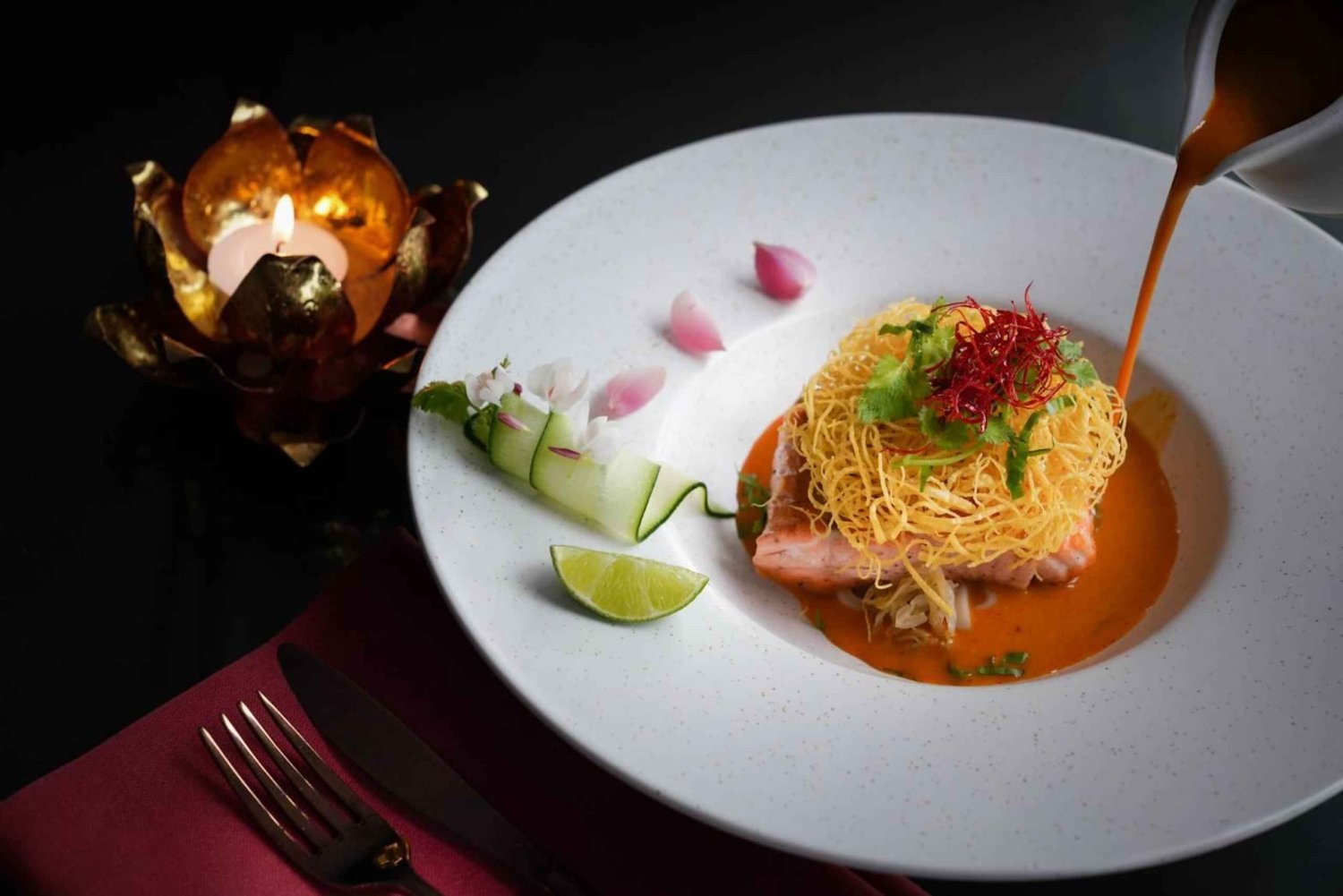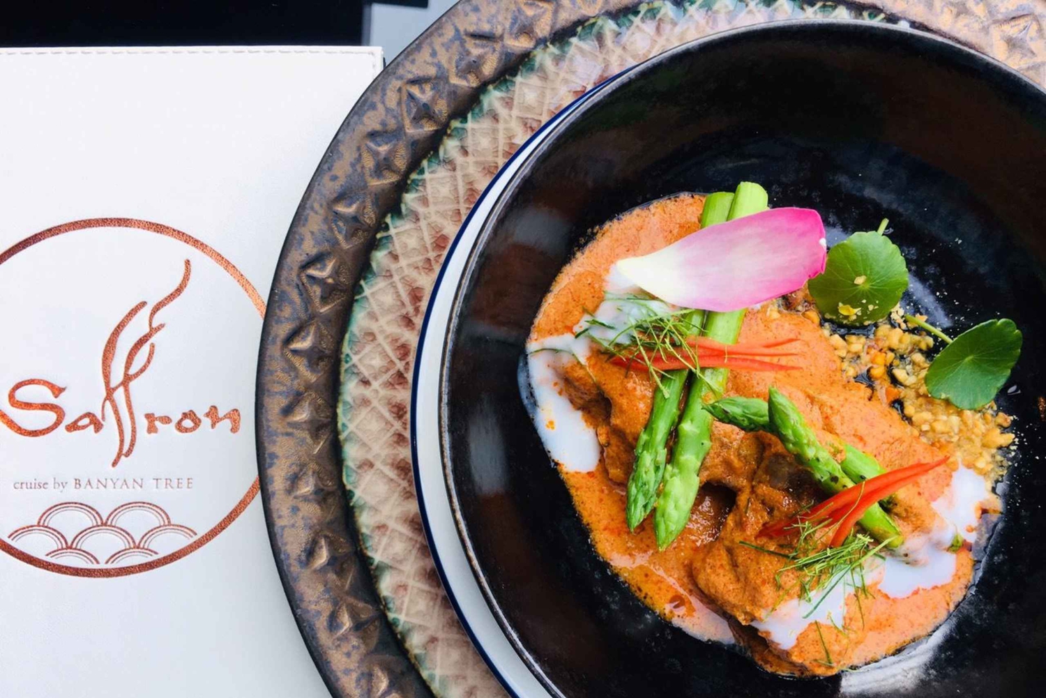 Embárcate en un viaje de lujo y elegancia con el Crucero Azafrán de Banyan Tree, una experiencia gastronómica única que combina la belleza del río Chao Phraya con los exquisitos sabores de la cocina tailandesa. Mientras te deslizas por el río, el Crucero Azafrán te ofrece una perspectiva inigualable de los lugares emblemáticos de Bangkok, todo ello mientras te deleitas con una comida gourmet que refleja la excelencia culinaria por la que es conocido Banyan Tree. Tanto si celebras una ocasión especial, como si organizas una cena de negocios o simplemente quieres disfrutar de una velada romántica, el Crucero Azafrán promete una experiencia inolvidable e impresionante. A bordo del Crucero Azafrán, cada detalle está diseñado para elevar tu experiencia gastronómica. El menú es una cuidada selección de platos tailandeses contemporáneos, elaborados con los mejores ingredientes y presentados con un toque artístico. Desde los ricos y aromáticos currys hasta el delicado marisco y los sabrosos postres, cada plato del Crucero Azafrán es una celebración de la herencia culinaria tailandesa, impregnada de moderna sofisticación. El lujoso entorno del crucero, con su elegante decoración y vistas panorámicas, crea un ambiente mágico que complementa a la perfección la experiencia gastronómica. Para mejorar tu velada en el agua, ofrecemos paquetes exclusivos que te permiten disfrutar de lo mejor del Crucero Azafrán a un precio muy valioso. Estos paquetes están cuidadosamente diseñados para incluir una selección de los platos más populares e icónicos, garantizando que puedas saborear una experiencia gastronómica de primera sin compromisos. Tanto si eres un entusiasta de la gastronomía como si simplemente quieres disfrutar de una noche de lujo, los paquetes del Crucero del Azafrán by Banyan Tree ofrecen una experiencia exclusiva de alta calidad que combina la belleza del río con lo mejor de la cocina tailandesa. Zarpa en el Crucero Saffron, donde cada momento es un festín para los sentidos.Includes