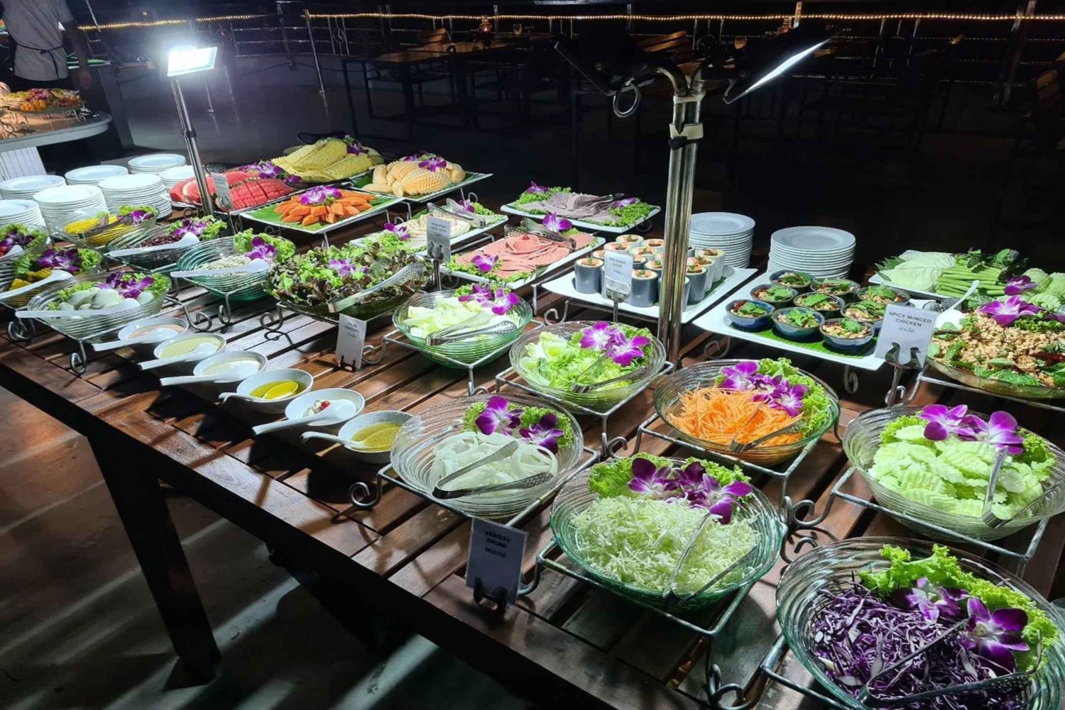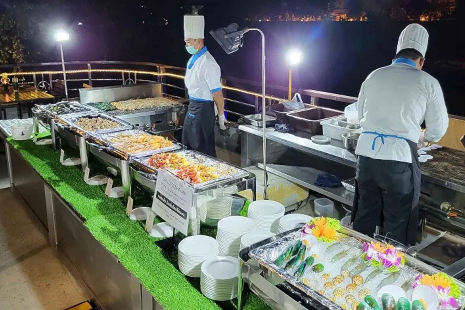 Embárcate en una velada inolvidable a bordo del Crucero Fluvial Orquídea Blanca en Bangkok, donde el lujo se une a la cultura y el entretenimiento. Desde el momento en que subes a la elegante embarcación, te recibe un personal cálido y atento, que marca la pauta para una experiencia excepcional en el río Chao Phraya. Mientras el crucero se desliza por el río, disfrutarás de impresionantes vistas del emblemático horizonte de Bangkok y de sus monumentos, que te ofrecerán una perspectiva única de la belleza de la ciudad. La serena atmósfera a bordo, unida al suave movimiento del agua, garantiza un relajante comienzo de la velada. Las cubiertas superiores ofrecen una incomparable vista panorámica de 360 grados de los alrededores. Con las luces de la ciudad parpadeando bajo el cielo nocturno y una suave brisa añadiendo ambiente, es el lugar perfecto para relajarse y disfrutar de las vistas. El Crucero Fluvial Orquídea Blanca ofrece una encantadora velada de entretenimiento, que comienza con espectáculos de danza tradicional tailandesa. Expertos bailarines tejen cautivadoras historias a través de sus elegantes y precisos movimientos, sumergiéndote en el rico patrimonio cultural de Tailandia. A medida que avanza la noche, el ambiente cambia a una animada mezcla de música pop y jazz, creando el telón de fondo perfecto para que bailes toda la noche. Cuando llegue la hora de cenar, deléitate con un suntuoso bufé internacional. En él encontrarás una variada selección de cocinas, desde la europea a la japonesa, junto con auténticos platos tailandeses. Es un viaje culinario que promete satisfacer todos los paladares. Durante toda la velada, el ambiente animado y amistoso a bordo te invita a relacionarte con tus compañeros de viaje, haciendo que la experiencia gastronómica no sea sólo una comida, sino una ocasión social llena de vibrantes conversaciones y disfrute compartido. Cuando el crucero regresa a su punto de partida, te marchas con recuerdos imborrables de una noche encantadora en el Crucero Fluvial Orquídea Blanca. Esta experiencia combina a la perfección unas vistas impresionantes, un entretenimiento atractivo y una cena exquisita, lo que la convierte en una visita obligada para cualquiera que busque una noche extraordinaria en Bangkok.Includes