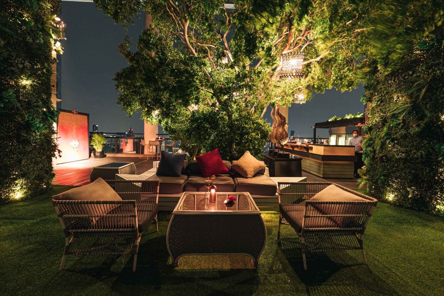 - Jardín del cielo al aire libre en la planta 52 de Banyan Tree Bangkok con vistas panorámicas