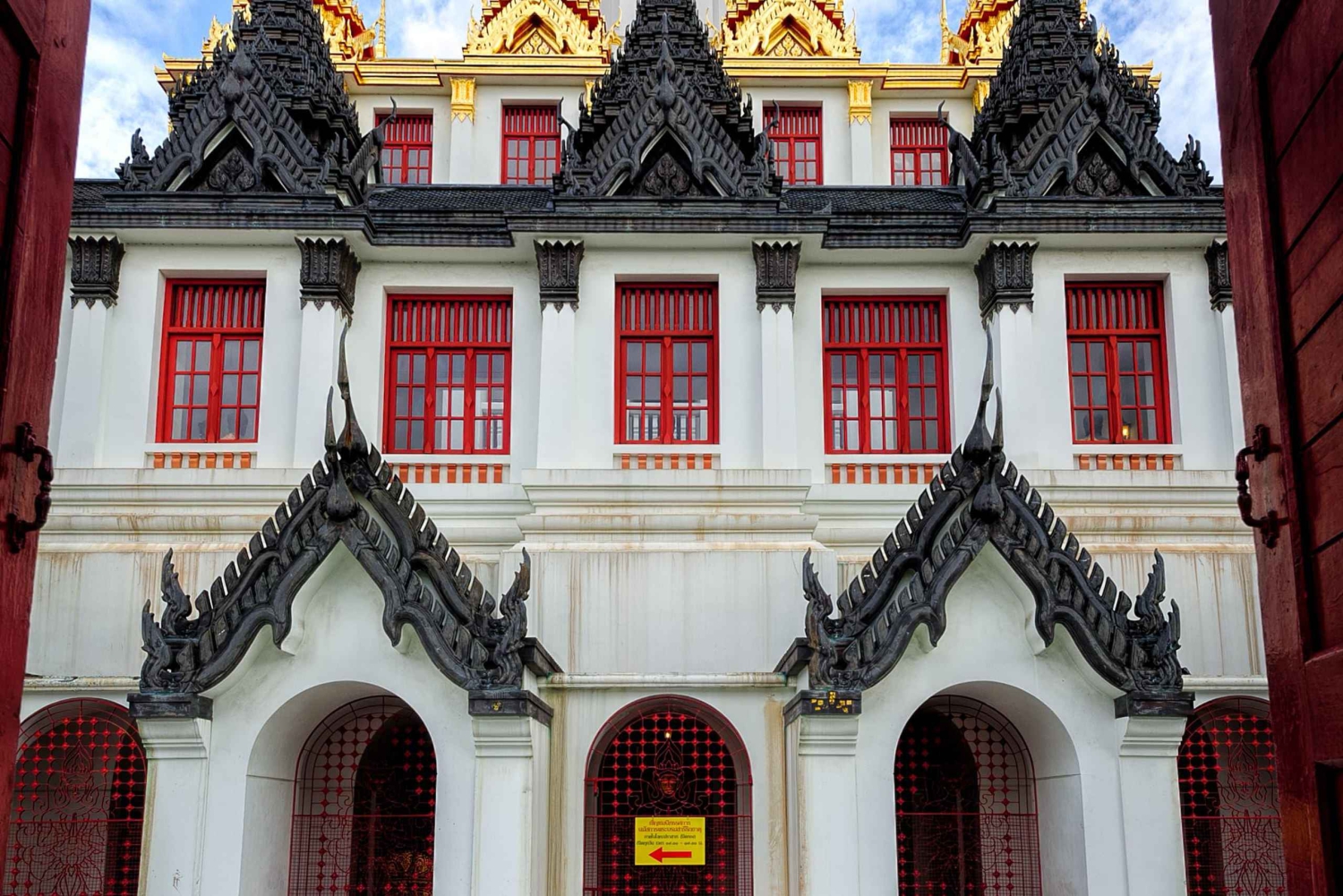 Discover the heart of Bangkok on a guided tour of the city's most iconic landmarks. Ready for an unforgettable day in Bangkok? Join us on a journey through the city's most iconic landmarks, where history, culture, and breathtaking views await you. Your Adventure Begins: - Convenient Hotel Pick-Up: We start the day by picking you up right from your hotel, so you can relax and get ready for an incredible experience. - Wat Saket (Golden Mount): Our first stop is the majestic Wat Saket, also known as the Golden Mount. Climb the 318 steps to the top, and you'll be rewarded with stunning panoramic views of Bangkok. It's the perfect way to see the city from above, and the peaceful atmosphere will leave you feeling refreshed. - Loha Prasat (Metal Castle) at Wat Ratchanatdaram: Next, we visit the unique Loha Prasat, or Metal Castle. This architectural marvel is unlike anything else in Bangkok, with its intricate design and spiritual significance. Explore its many tiers and learn about the history that makes this place so special. - The Giant Swing (Sao Ching Cha): Just a short ride away, we arrive at the iconic Giant Swing, a symbol of Bangkok. Standing tall in front of Wat Suthat, this striking red structure has been a part of the city's traditions for centuries. It's a must-see for any visitor! - Rattanakosin Exhibition Hall: Finally, dive into the rich history and culture of Bangkok at the Rattanakosin Exhibition Hall. This interactive museum brings the past to life with engaging exhibits and stories that will give you a deeper understanding of Thailand's capital. Why You'll Love This Tour: - Perfect for History Buffs: Get a taste of Bangkok's rich history and culture, from ancient temples to modern-day exhibitions. - Stunning Views: The Golden Mount offers some of the best panoramic views in the city. - Unique Experiences: Visit landmarks that are truly one-of-a-kind, like the Loha Prasat and the Giant Swing. - Interactive Learning: The Rattanakosin Exhibition Hall provides a fun and educational experience for all ages. - Join us for a day of discovery, culture, and breathtaking sights. Whether you're a first-time visitor or a seasoned traveler, this tour offers something special for everyone. Book your spot today and see Bangkok like never before!Includes