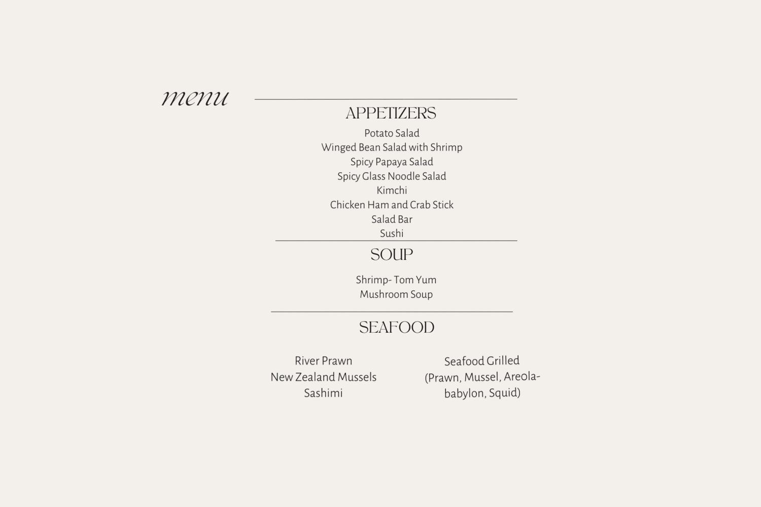 Welcome drinks (Fruit cocktail) International and seafood buffet Desserts and fruits Soft drinks Water Live music Thai classical dancing performancesImportant Information