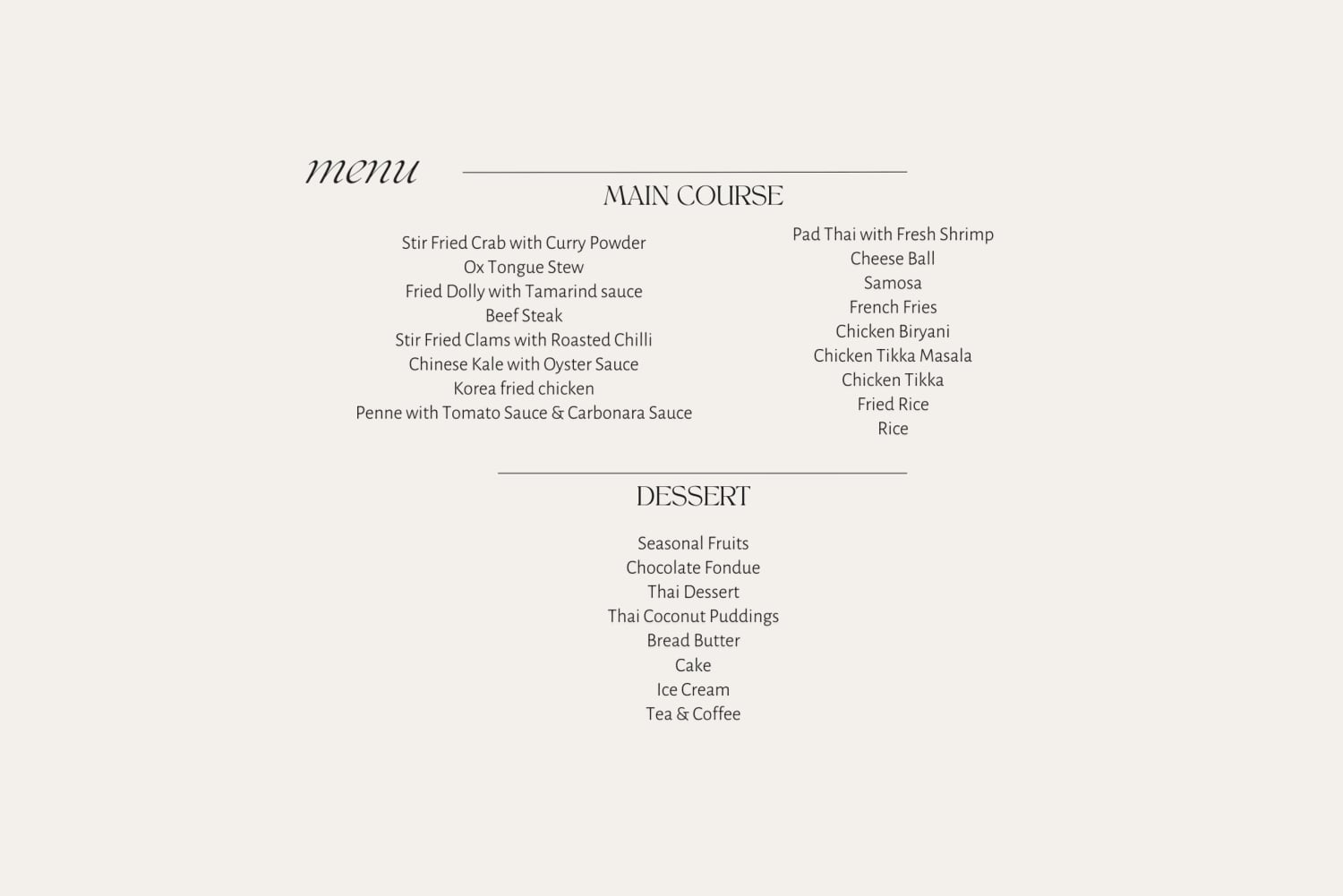 - Sip on a fruit cocktail and soft drinks then enjoy sweet desserts after dinner