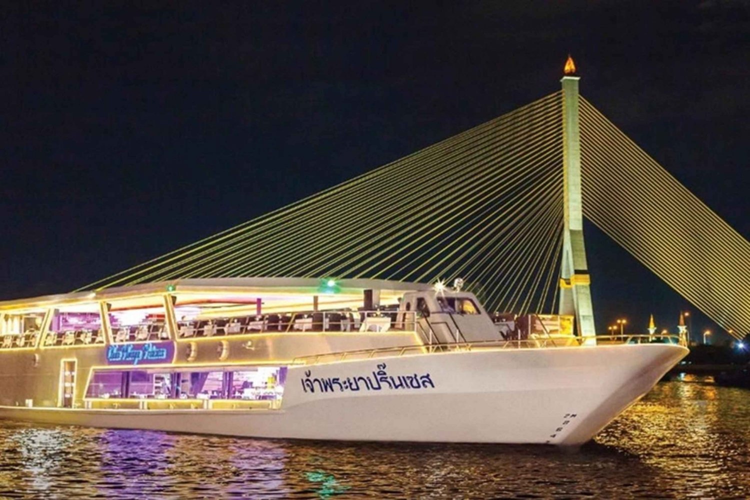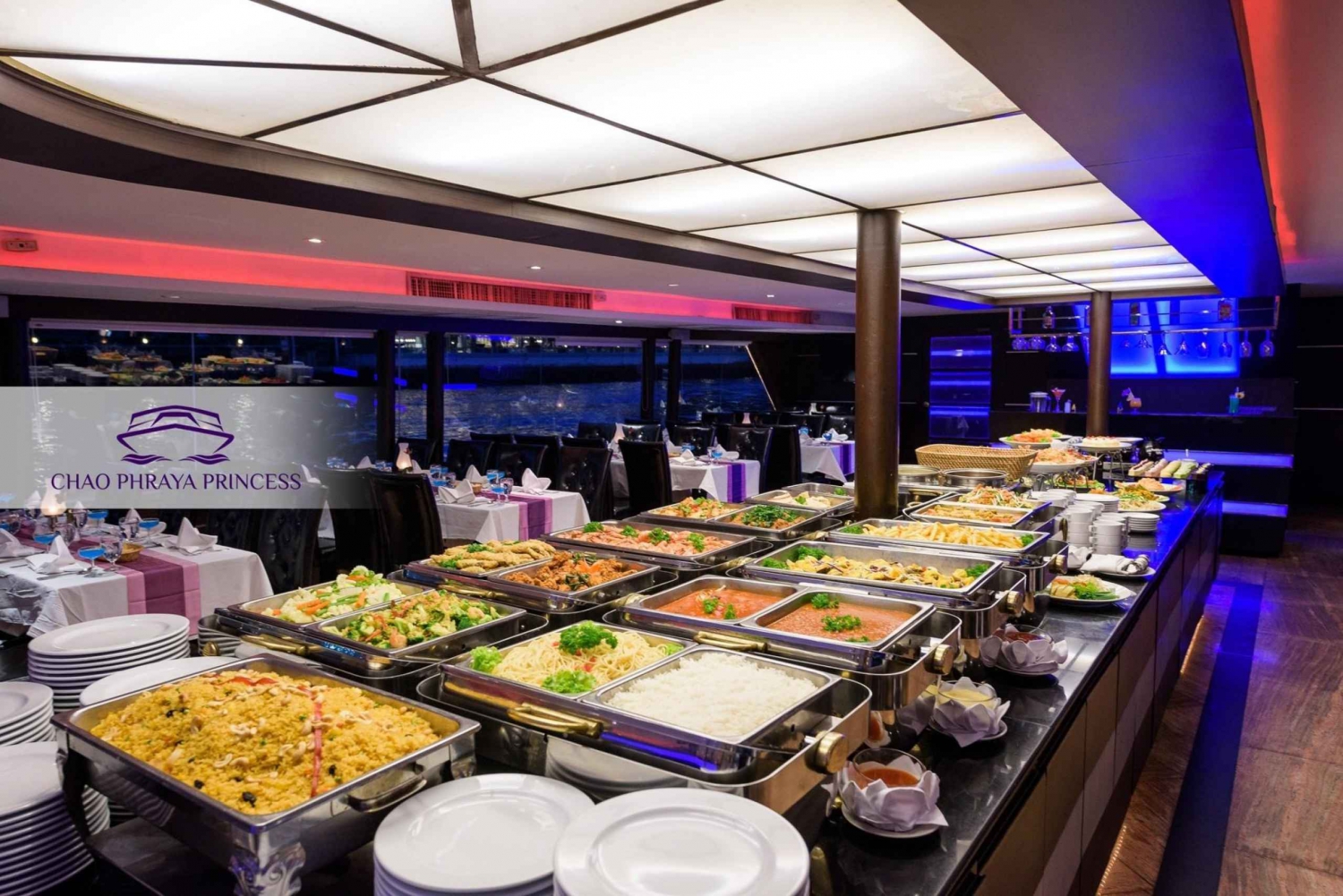 Hotel pick up and drop off. The Chao Phraya Dinner Cruise ticket. Live Music Unlimited buffet with Thai and International dinnerEasy cancellation