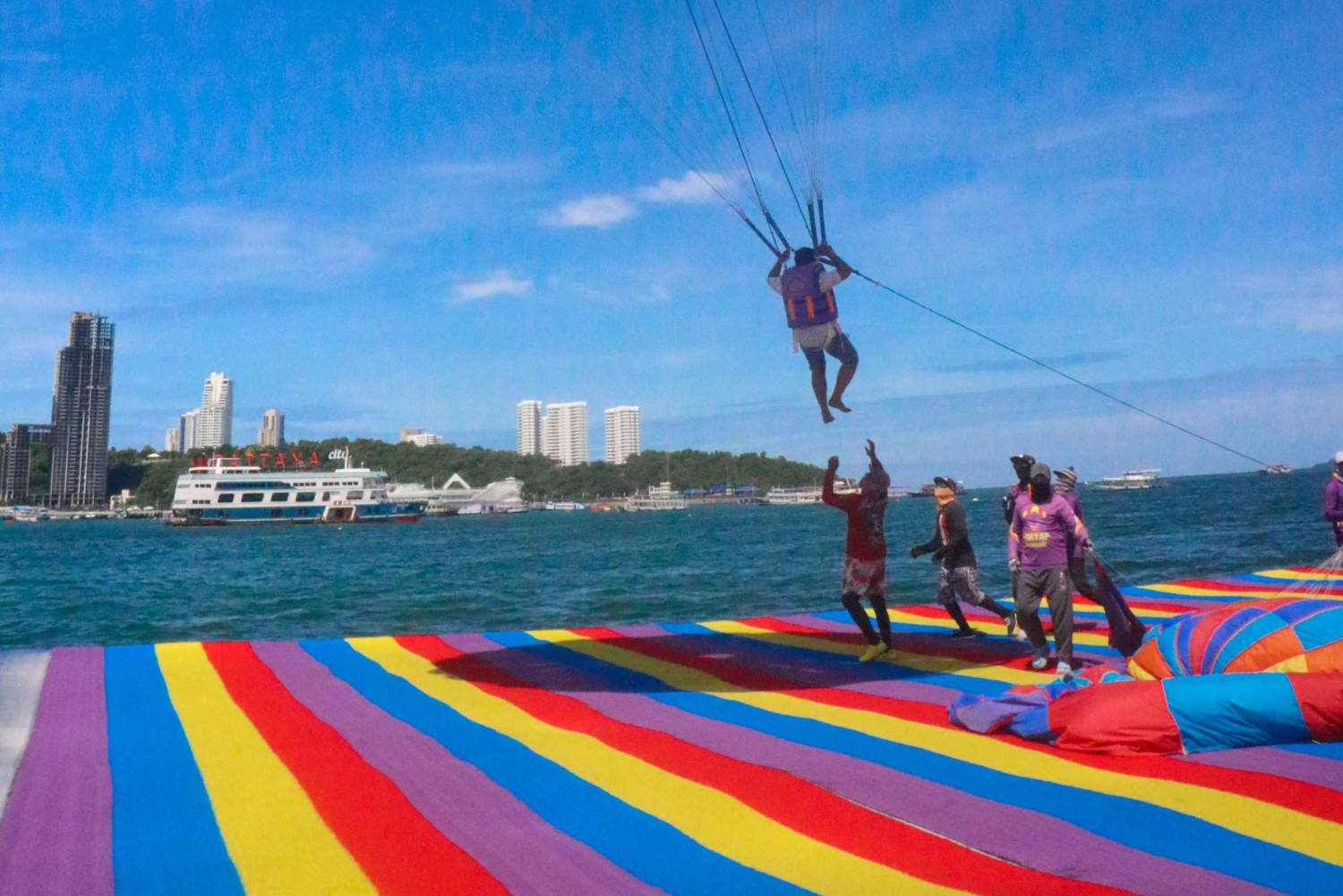Start your day trip from Bangkok in a comfortable VIP minivan, traveling approximately 2 hours to Pattaya. Then, board a speedboat to cross the sea to Koh Larn. Experience thrilling parasailing over the sparkling blue ocean and enjoy panoramic aerial views. Afterward, try sea walking with a special underwater helmet to see vibrant tropical fish up close. Continue the adventure at Tawaen Beach with jet skiing and banana boat rides. Relax on a sunbed and enjoy a local-style seafood lunch by the beach, freshly prepared with optional halal and vegetarian choices. Spend your leisure time swimming, taking photos, or simply resting before returning to Bangkok by speedboat and VIP minivan.Includes