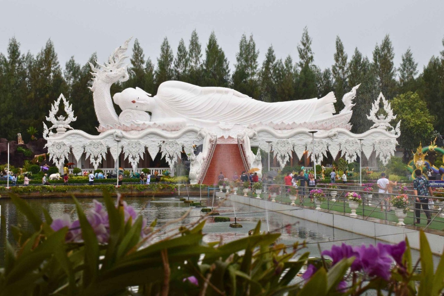 Follow the ancient energy of the dragon in this day-long spiritual journey through sacred sites, serene waters, and stories whispered through centuries of Thai belief. Designed for seekers, mindful travelers, and those drawn to the mysteries of Thai culture, this Soul Edition experience invites you to reconnect with spirit, myth, and self. The journey begins with a peaceful morning drive out of Bangkok, arriving at Damnoen Saduak Floating Market before the crowds. Listen to the rhythm of riverside life, where water, trade, and karma have flowed together for over 200 years. Enjoy lunch on your own at the market—recommended dishes include rice noodles, boat noodles, Pad Thai, coconut ice cream, and mango sticky rice. Next, journey inward at Wat Don Kanak, a lesser-known sanctuary steeped in mythological resonance. Here reside the sacred 9 Naga Families—powerful serpent beings believed to guard the underworld and protect ancient wisdom. Learn how these deities bridge the earthly and the spiritual, and take time to offer incense or meditate in their presence. Then, ascend to the sky at the awe-inspiring Wat Samphran, where a colossal dragon coils protectively around a rose-colored tower. Gently climb to the top through the dragon’s body. At the dragon’s head, learn and practice meditation to stay present in the NOW moment—or simply breathe, surrounded by panoramic views of the world below. Continue to Phra Pathom Chedi, Thailand’s tallest golden stupa and a revered site in Theravāda Buddhism. Believed to be over 2,000 years old, it houses Buddha relics and stands as a monument to the ancient Dvaravati era. As dusk falls, take part in a serene candlelight walking meditation (เวียนเทียน) around the chedi—an act of devotion that calms the mind and honors the Buddha. The spiritual energy here is both humbling and profound. Enjoy dinner on your own at the vibrant Ninth Street Market in front of the temple. Return to Bangkok renewed, carrying not just memories, but blessings from the dragon, the naga, and the ancient golden stupa—silent witnesses to countless souls before yours.Includes