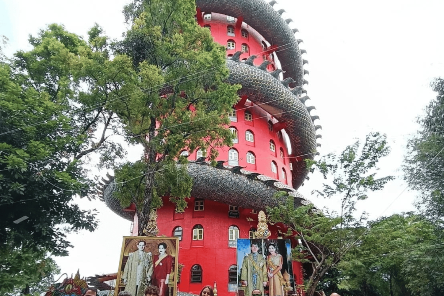 - Vieraile ainutlaatuisessa Wat Sam Phran lohikäärmetemppelissä.