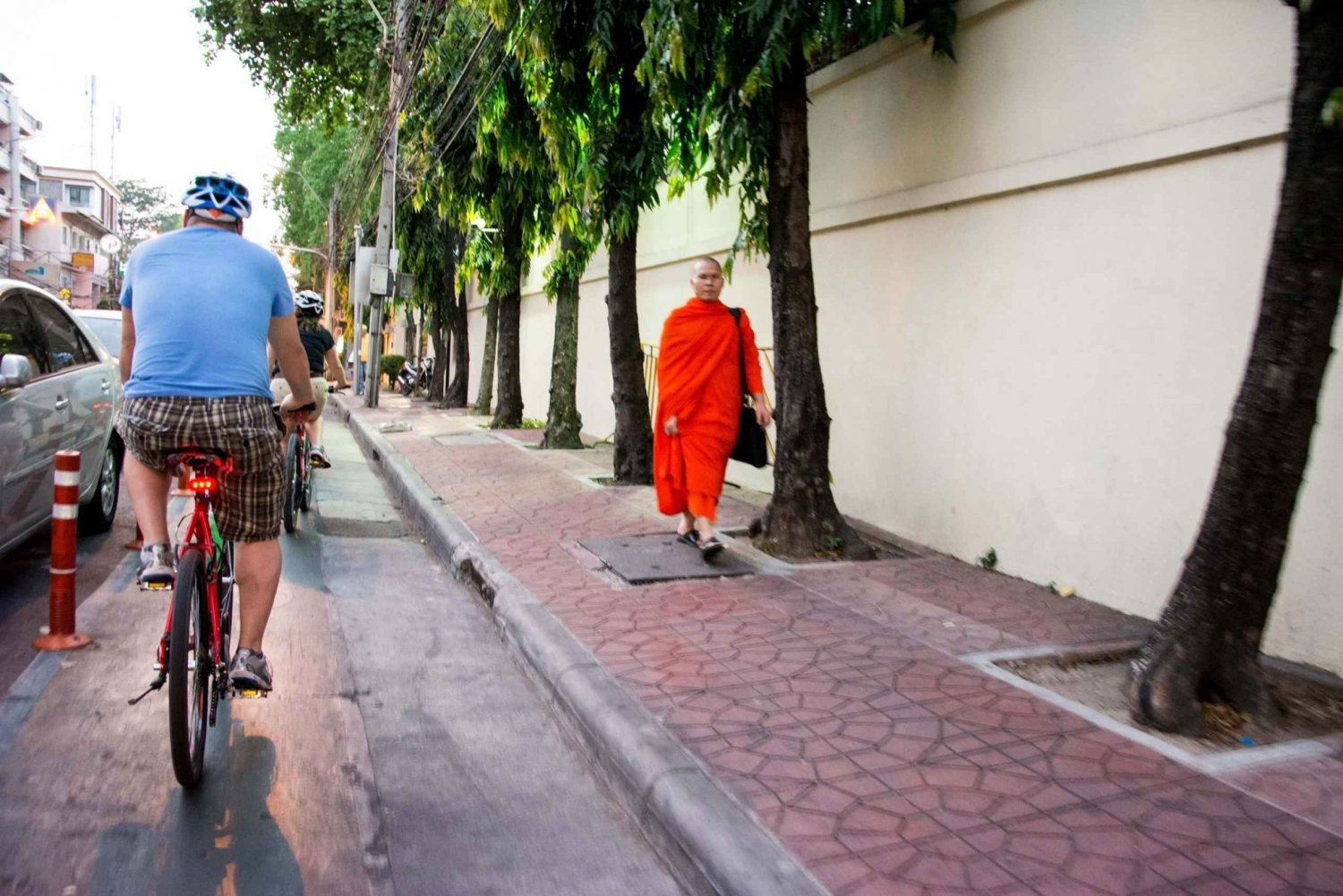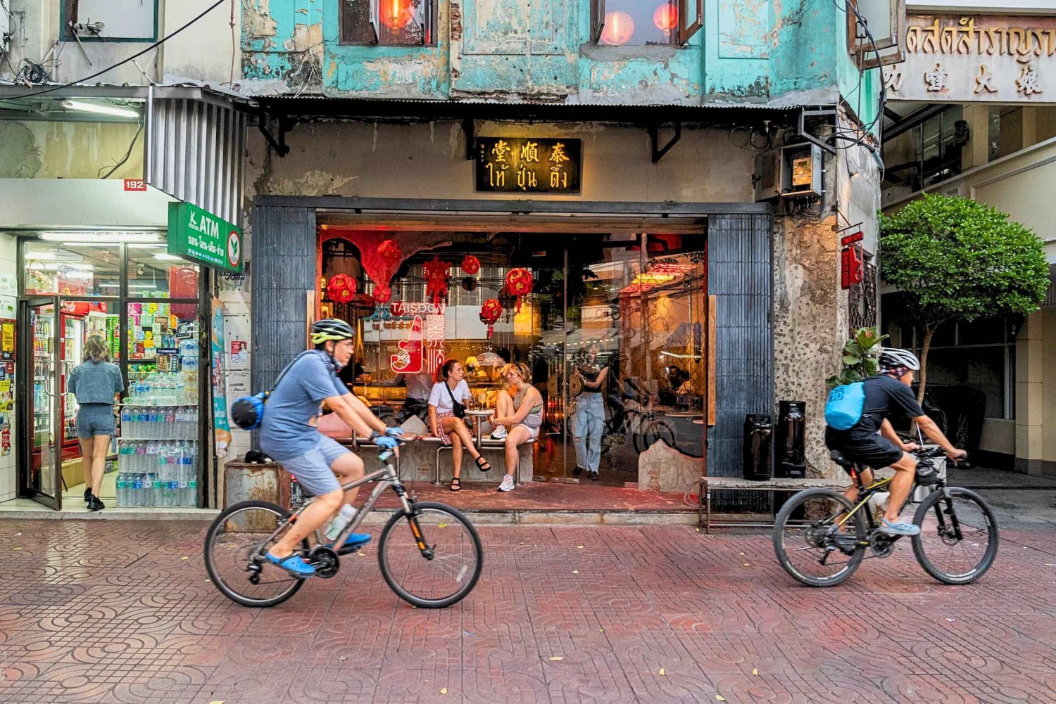 Näe Enkelten kaupunki aivan uudessa valossa pyöräillessäsi kaupungin halki auringonlaskun jälkeen! Tämä Bangkokin iltapäinen pyöräretki vie sinut hiljaisille sivukaduille, Chao Phraya -joen yli ja Bangkokin ikonisimpien maamerkkien ohi. Ne ovat kauniisti valaistuina iltataivasta vasten. Aloita seikkailusi MRT Sam Yot -aseman lähellä nopealla pyörän sovituksella, ennen kuin lähdet vanhankaupungin piilossa oleviin kujille. Ensimmäinen pysäkki on Loha Prasat, Thaimaan ainoa metallilinna, jonka kiiltävät tornit loistavat yötaivaalla. Kun seisot siellä yöllä, tuntuu kuin olisit löytänyt Bangkokin salaisen puolen! Jatka ohittaen demokratian monumentti ja Khao San Roadin vilkkaat sivukadut, ennen kuin pysähdyt Phra Athitin linnoitukselle ja silmiinpistävälle Rama VIII:n sillalle, joka on paikallisten suosikkipaikka. Kun matkustat paikallisella lautalla joen yli, voit rentoutua ja katsella veden kimaltavia valoja. Thonburin puolella ajat hiljaisilla sivukaduilla Wat Rakangiin, joka on vuosisatoja vanha Ayutthayan aikainen temppeli. Aja joenrantaa pitkin ja ohita Bangkokin ikonisen Aamunkoiton temppelin (Wat Arun) hehkuvat tornit, jotka loistavat kauniisti joen yläpuolella. Myöhemmin ylitä Memorial Bridge -silta takaisin itärannalle ja saavut Bangkokin kukkatorille (Pak Khlong Talat) juuri, kun se herää eloon värien, tuoksujen ja myöhäisillan hälinän myötä. Kulje kukkakujien sokkeloissa, joissa valmistellaan jasmiiniseppeleitä ja lootusnuppuja Bangkokin temppeleihin. Opas valitsee muutamia paikallisia herkkuja, joita voit maistella, kun pysähdyt rentoutumaan, tarkkailemaan vilinää ja nauttimaan Bangkokin elämän aidosta rytmistä pimeän tultua. Sieltä ajat ohi Wat Phon ja Suuren palatsin, niiden kultaiset pagodit ja katot loistavat kirkkaasti valonheittimien alla. Yöllä nämä maailmankuulut maamerkit tuntuvat lähes toisesta maailmasta, ilman päiväsaikaan näkyviä väkijoukkoja. Pysähdy Sanam Luangiin, laajalle kuninkaalliselle paraatinaukeamolle, josta on upeat näkymät palatsikompleksiin, joka on valaistu tummaa taivasta vasten. Viimeinen pysäkki on korkea Giant Swing (Sao Ching Cha), yksi Bangkokin ikonisimmista monumentteista. Se on valaistu tummanpunaiseksi ja kohoaa dramaattisesti vanhankaupungin yläpuolelle. Täydellinen valokuvaustilaisuus päättää iltakierroksesi ennen kuin poljet takaisin hiljaisten katujen halki. Tämä Discova-elämys sisältää kaikki pyörävarusteet, kypärät, vakuutuksen ja asiantuntevan paikallisen oppaan sekä pikkupurtavaa ja vettä. 12 kilometriä helppoa pyöräilyä, hyvin valaistut reitit ja huolellinen tahti tekevät tästä turvallisen ja nautinnollisen kaikille pyöräilijöille. Palattuasi olet nähnyt Bangkokin viileämmän, rauhallisemman ja aidomman puolen, jota useimmat matkailijat eivät koskaan näeIncludes