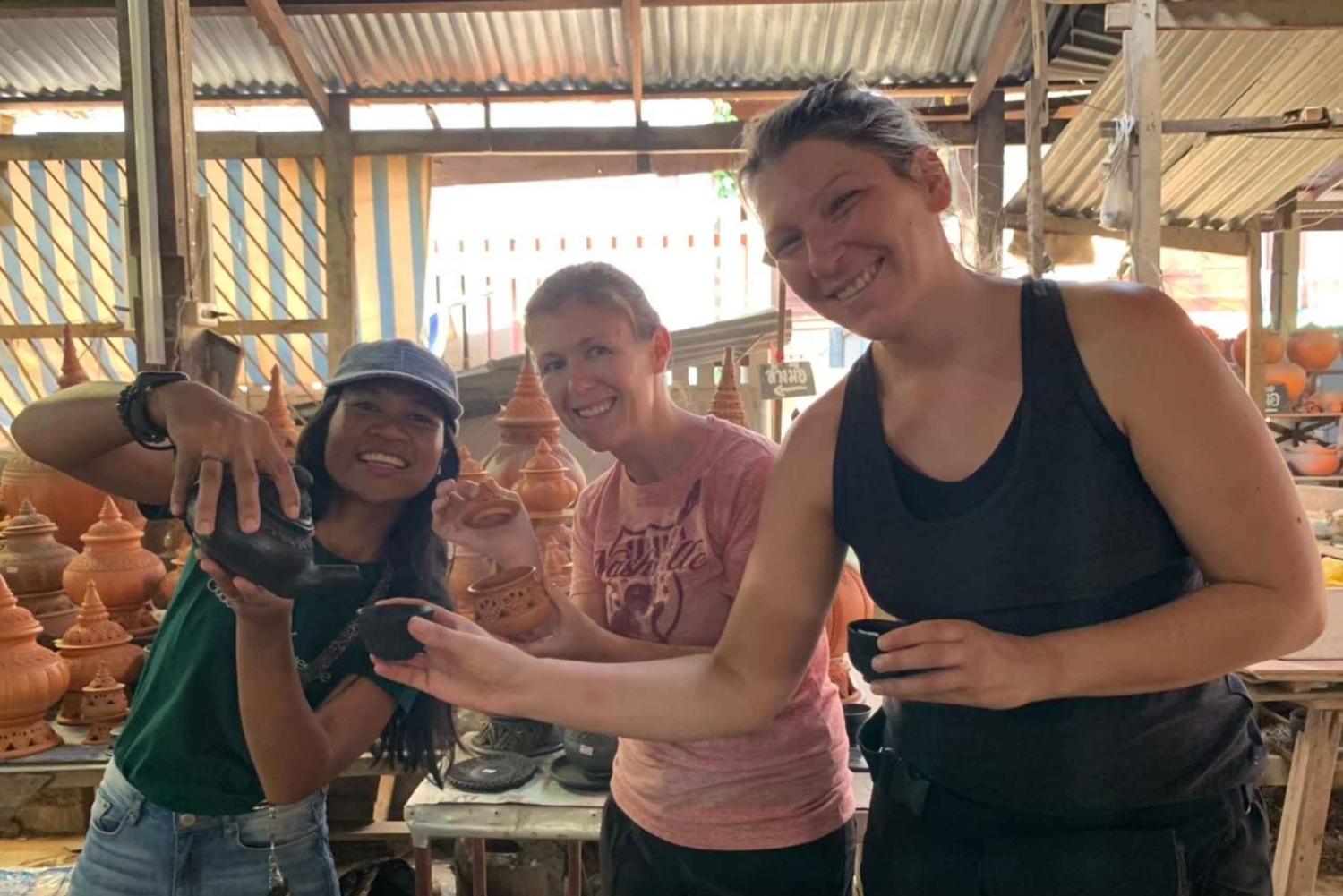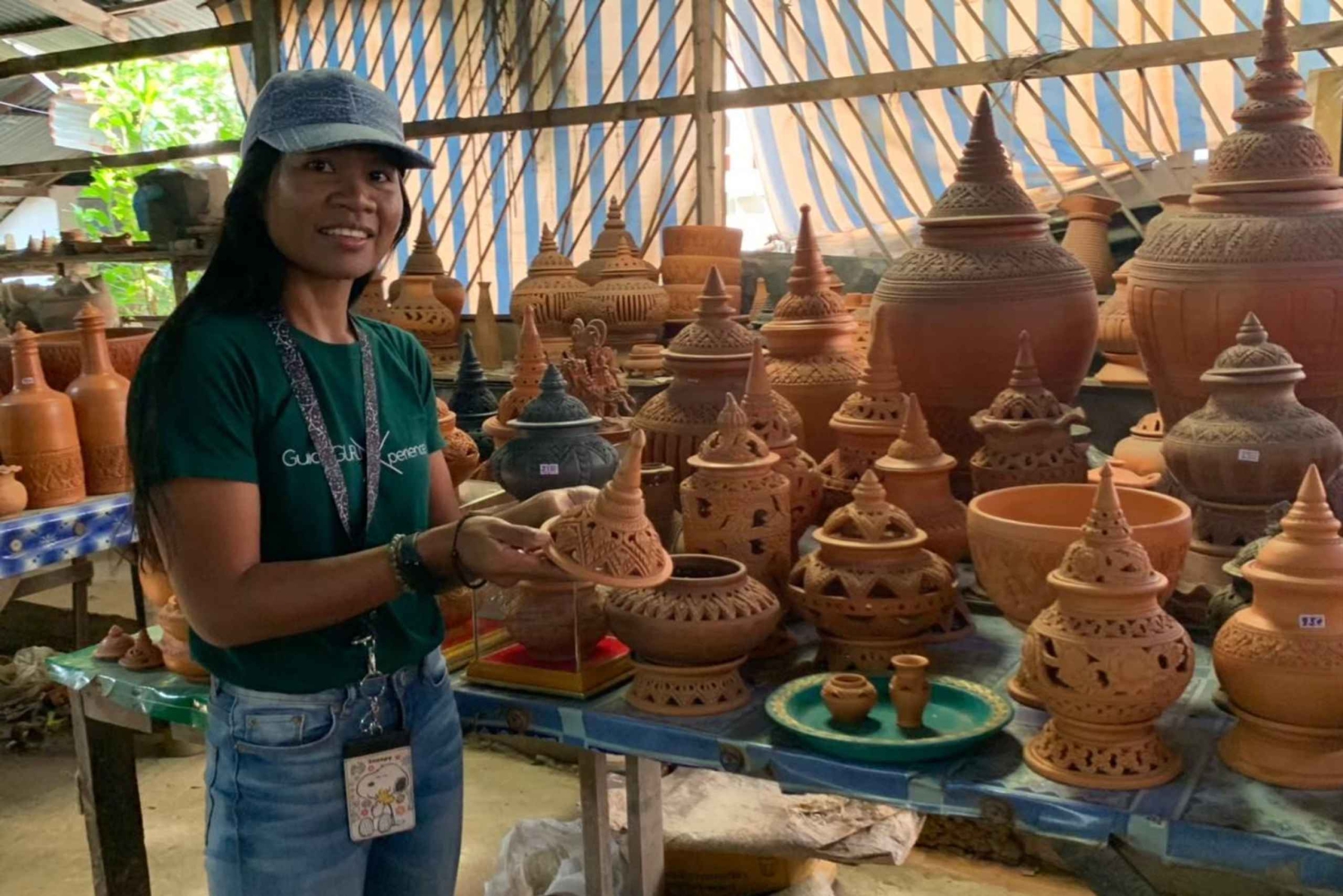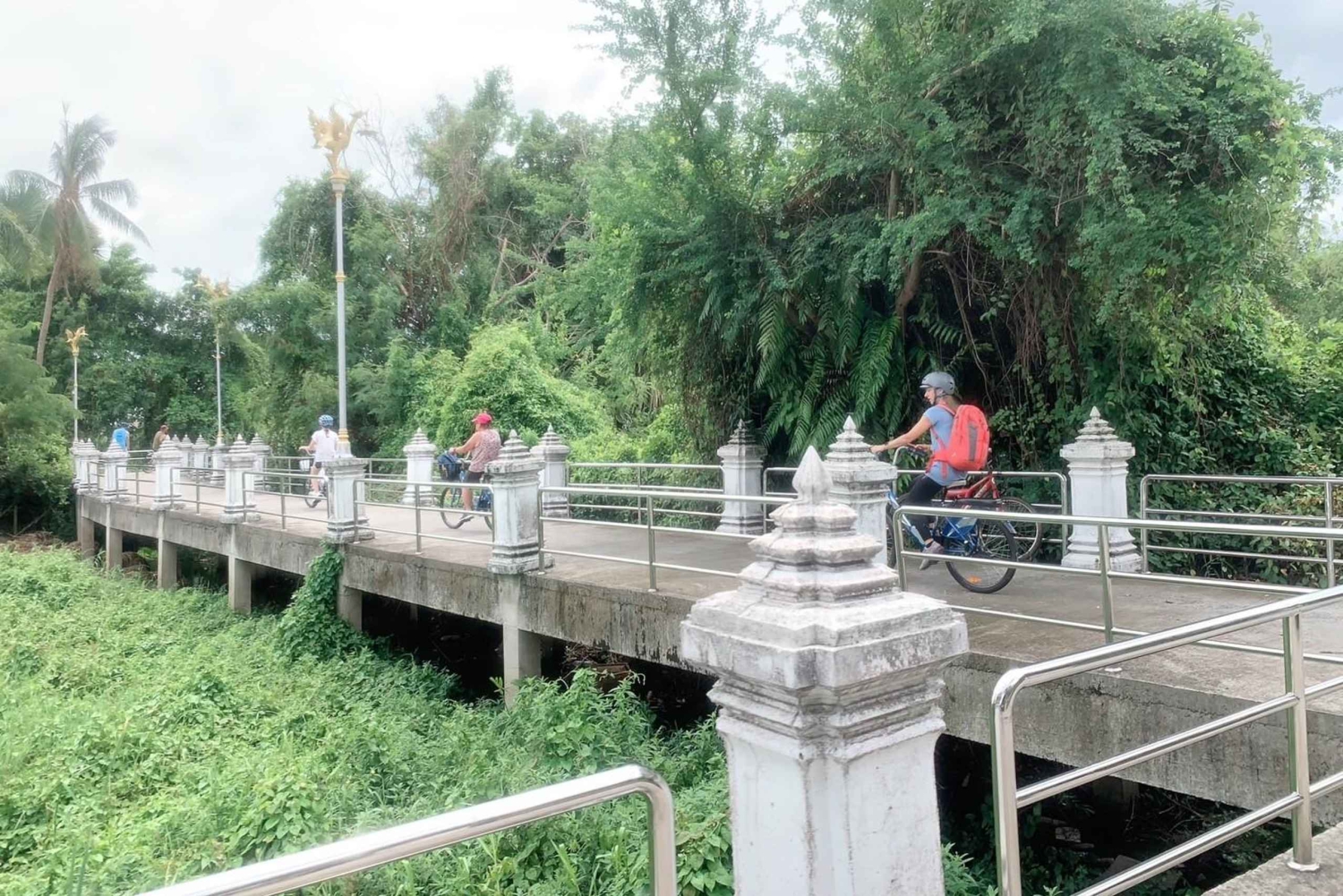 Tarina käsityötoiminnasta yhdellä päiväretkellä! Matkailija voi nauttia paljon hauskaa niiden kykyjen kanssa. Nähtävyyksien kiertoajelu laivamatka välillä siirtyminen Bangkokin kaupungin keskustasta Koh Kretiin, Ota oma pyöräretki Koh Kretin ympäri. Käy Paramaiyikawas temppeli ja tehdä perinteisiä käsitöitä 'Clay Work' meidän super hauskaa työpaja paikallisten ihmisten kanssa. Tee oma ja tuo yksi matkamuistoksi kotiin :) Paikallinen lounas Pad Thaita ja rentoutuminen kahvilassa joen rannalla. Tämä on yksi Bangkok One Day Trip Experiences Serie Operated by GuideGURU Olemme Socail Enterprise tukea paikallista yhteisöä ja ekosysteemiä.Includes