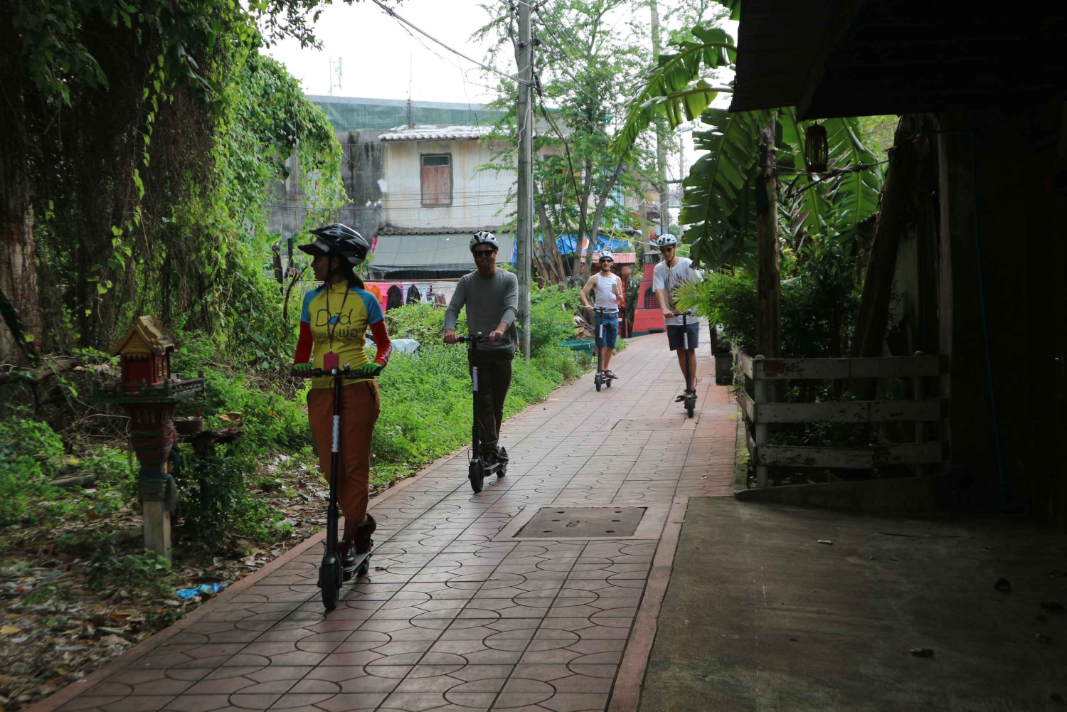 Bangkok : Aventure en scooter électrique au bord de la rivière et collation StreetFood