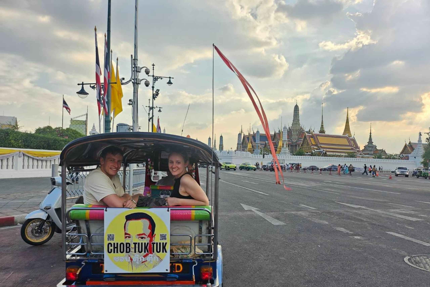 Explorez les sites et les joyaux cachés de Bangkok grâce à une visite 3 en 1. Profitez d'une balade en tuk-tuk d'une heure, d'une visite des canaux d'une heure et d'une visite culinaire de 2 heures. Repérez les varans qui prennent un bain de soleil au bord de l'eau et échappez à l'agitation de la ville pour un moment. Commencez par une promenade en tuk-tuk, un moyen amusant d'explorer les sites et les joyaux cachés de Bangkok. Découvrez le rythme rapide de la vie urbaine et les sites emblématiques de la ville. Ensuite, faites un tour en bateau pour découvrir le mode de vie local en bateau à longue queue le long de la rivière et des canaux de Bangkok et de Thonburi. Repérez les varans qui prennent un bain de soleil au bord de l'eau et échappez un instant à l'agitation de la ville. Enfin, participez à une visite culinaire avec un guide anglophone privé. Apprenez à connaître et à apprécier la cuisine de rue locale à Bangkok pour une aventure inoubliable.Includes