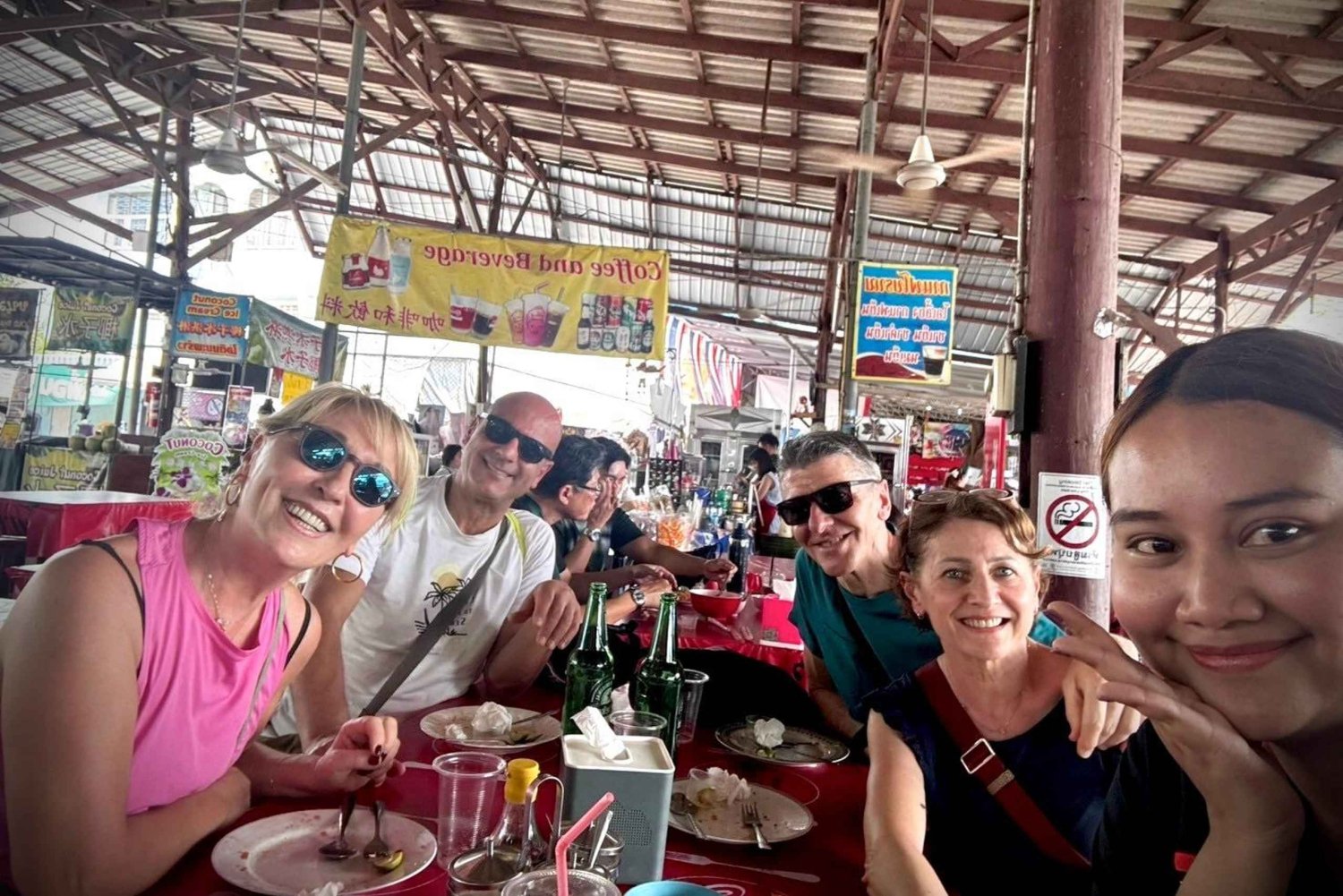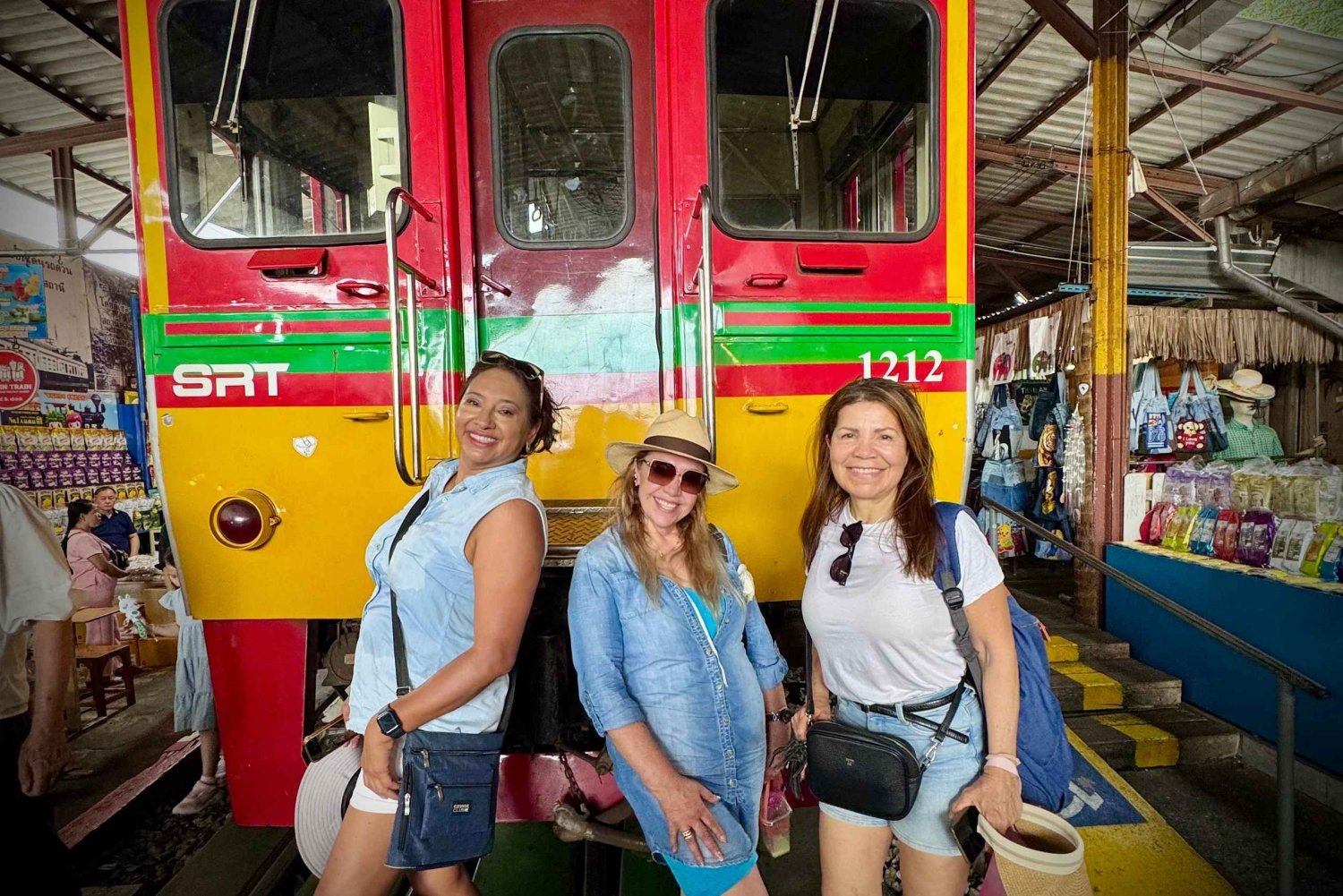Plongez au cœur de la culture thaïlandaise grâce à cette excursion immersive d'une journée juste à l'extérieur de Bangkok. Bien que très touristique de nos jours, les marchés continuent de montrer les méthodes traditionnelles de vente de marchandises depuis des bateaux et le long des voies ferrées. Cette excursion combine le charme local, des marchés animés et des sites inoubliables. À votre arrivée au marché ferroviaire de Maeklong, vous resterez à bord du train et traverserez le marché lui-même. Quelques instants avant l'arrivée du train, les vendeurs retirent leurs parasols et leurs marchandises, révélant les voies ferrées en dessous. C'est un spectacle rare et passionnant qu'il faut voir pour le croire. De là , vous vous rendrez au marché flottant de Damnoen Saduak, l'une des destinations les plus colorées et les plus animées de Thaïlande. À bord d'un bateau traditionnel à longue queue, vous naviguerez sur les canaux étroits, non seulement pour explorer le marché, mais aussi pour découvrir les villages locaux tranquilles et la vie quotidienne au bord des canaux. En chemin, vous verrez des bateaux chargés de fruits tropicaux frais, de nourriture de rue, de souvenirs et d'articles faits main. Tout au long du voyage, un guide anglophone agréé sera présent pour vous donner des informations et répondre à vos questions.Includes
