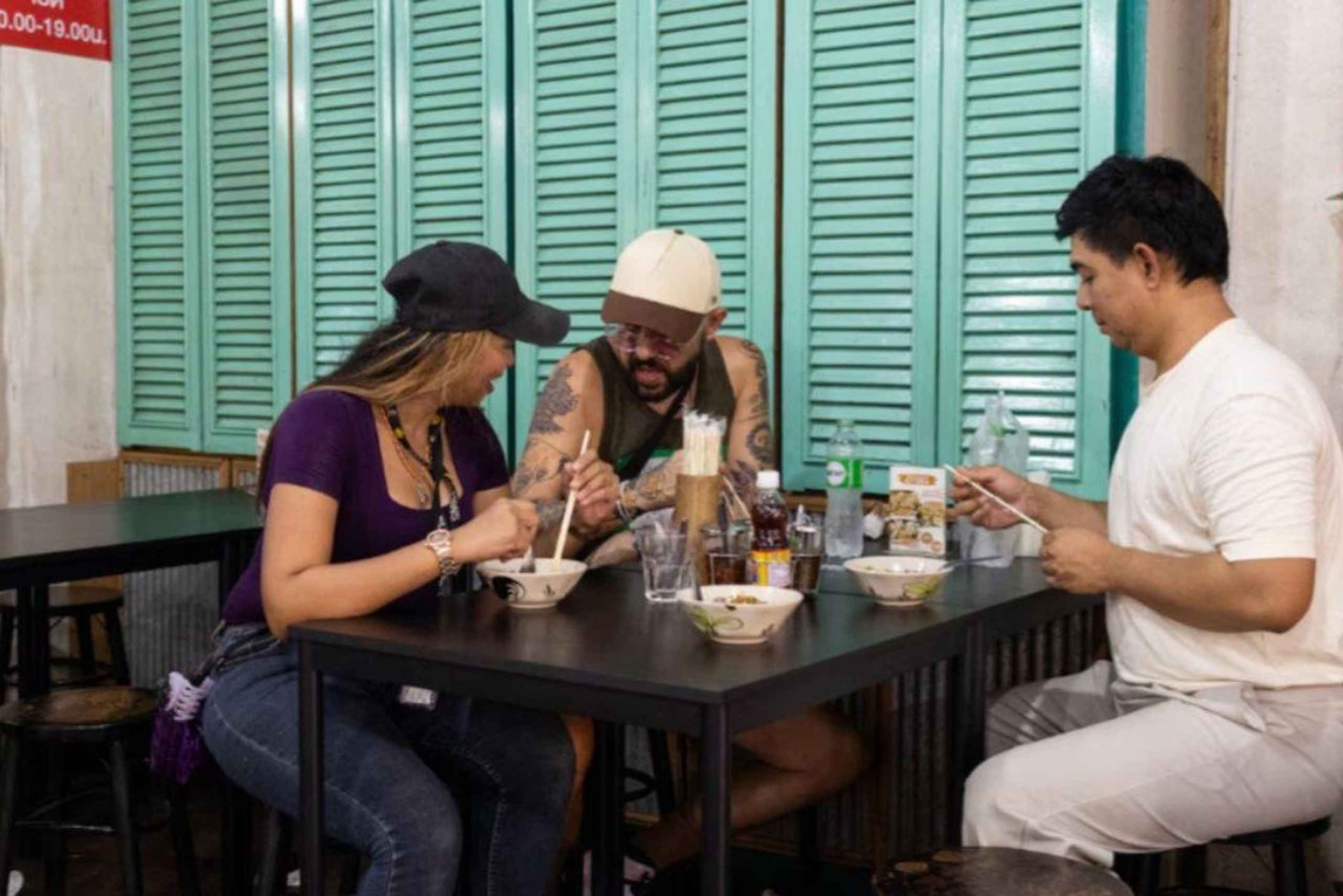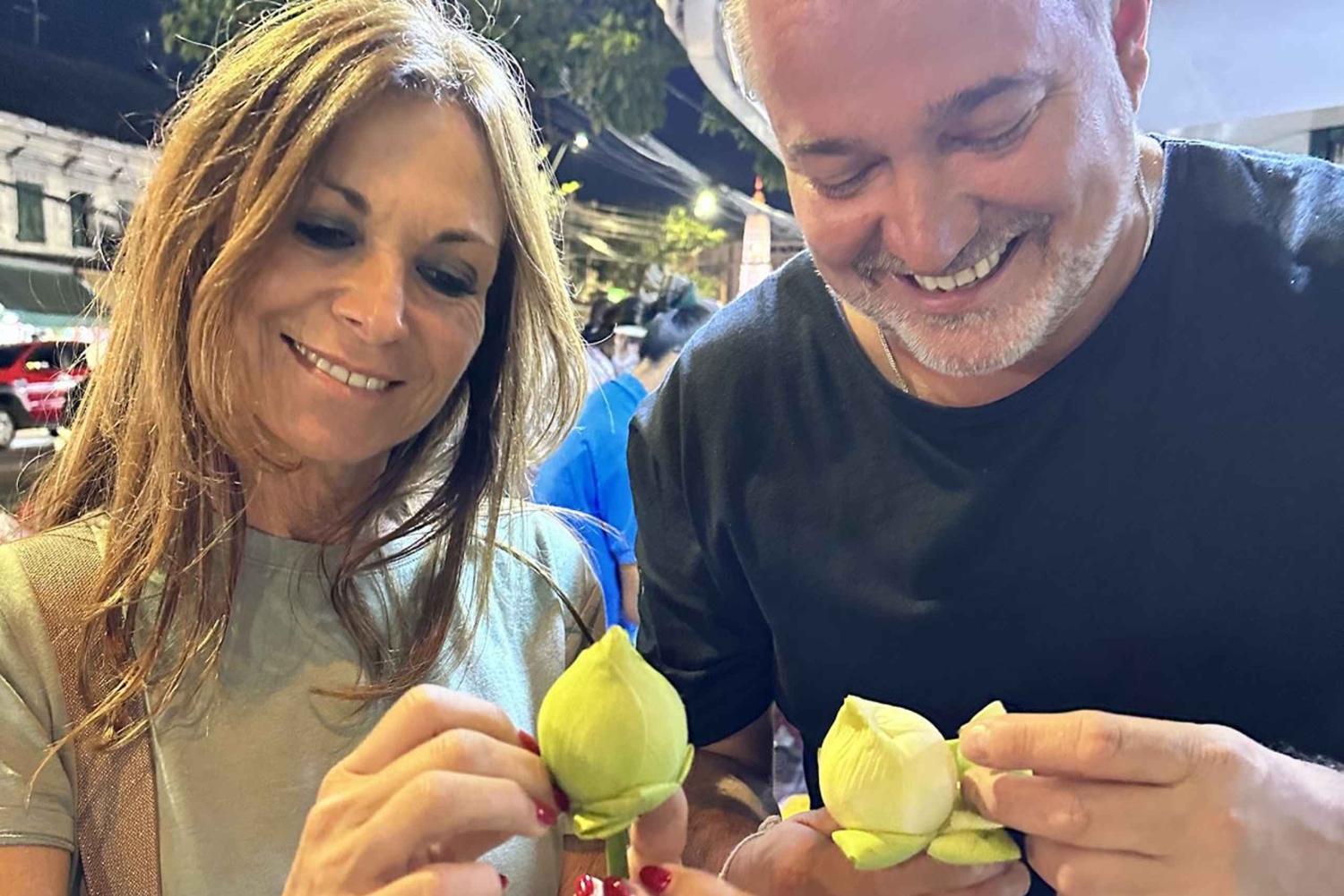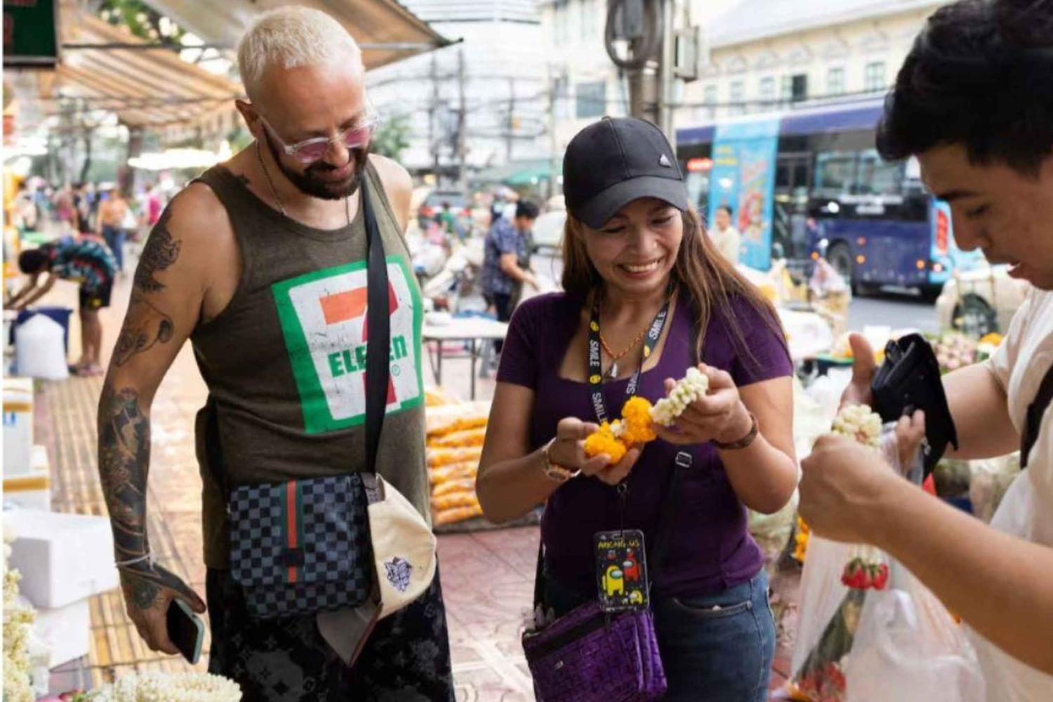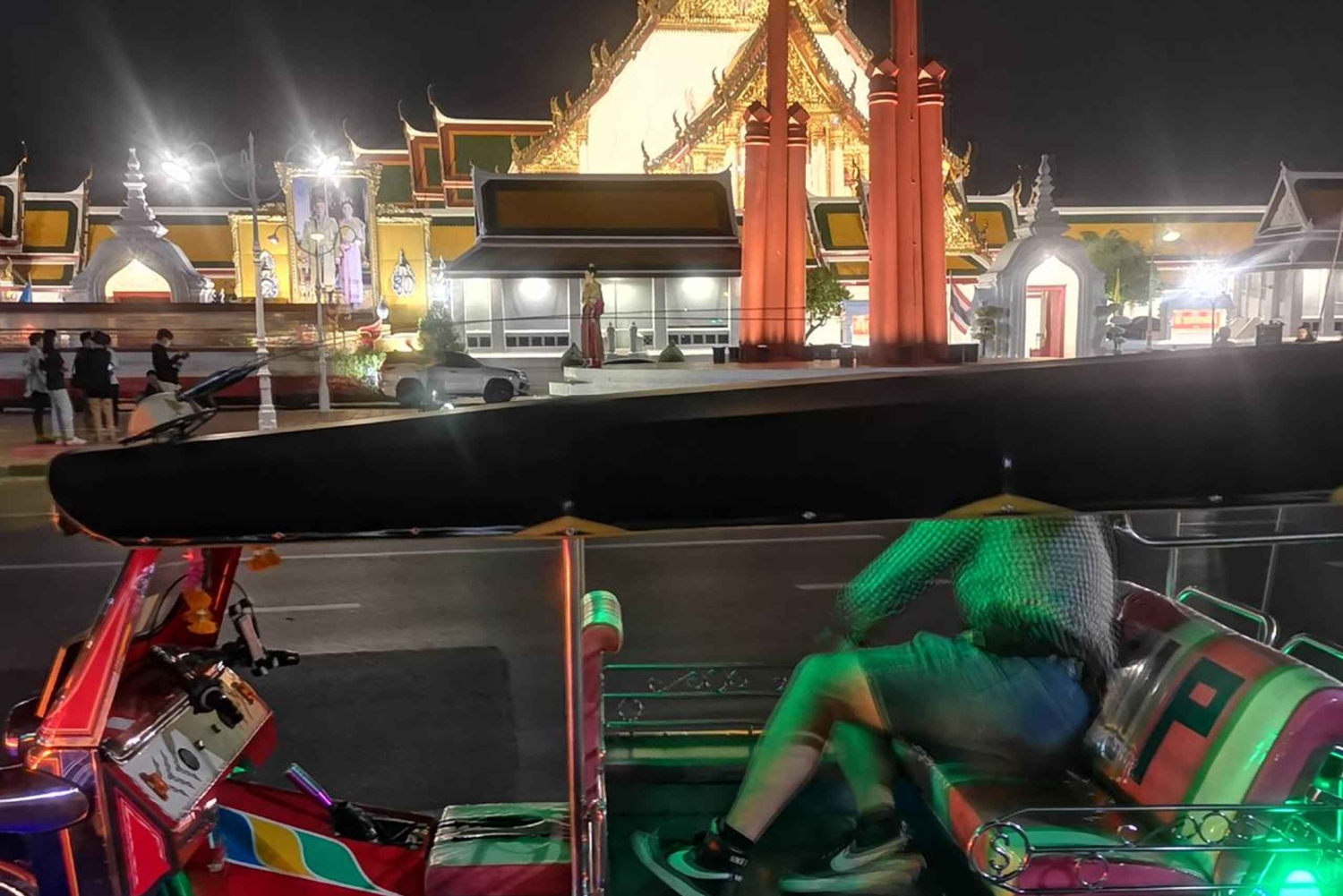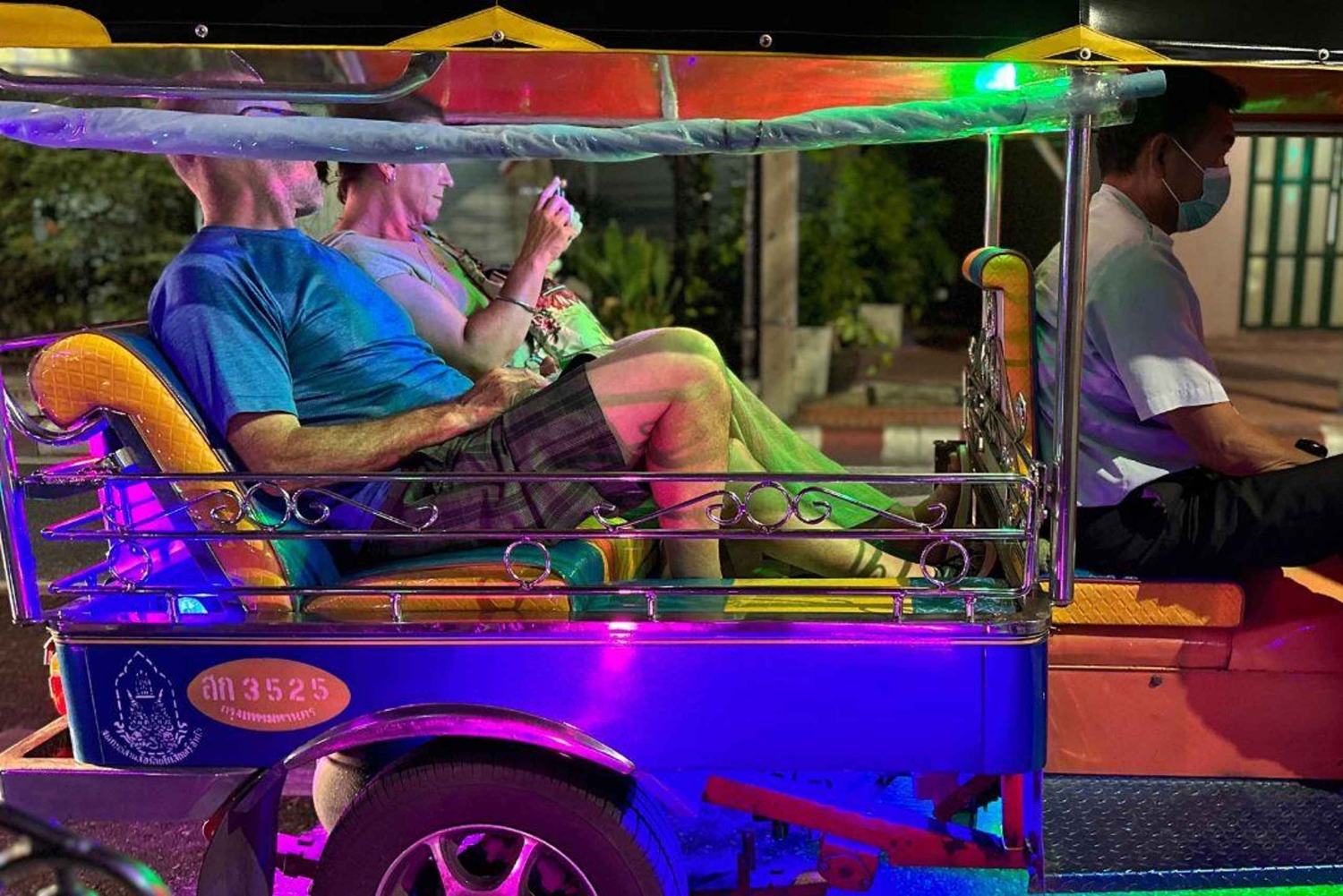 Embarquez pour un voyage culinaire nocturne inoubliable au cœur du vieux Bangkok, loin des sentiers battus. À la tombée de la nuit, montez à bord de notre emblématique tuk-tuk et laissez la brise fraîche du soir vous guider à travers un labyrinthe de rues animées, où flottent les arômes alléchants de la cuisine de rue thaïlandaise authentique. Nous vous emmènerons au légendaire marché nocturne de Chinatown, toujours en effervescence, où vous découvrirez un spectacle éblouissant de couleurs, de sons et, surtout, de saveurs sensationnelles. Préparez-vous à être émerveillé en sirotant une délicieuse boisson dans un bar rooftop exclusif, tout en admirant le majestueux Temple de l'Aube (Wat Arun) qui projette sa lueur dorée sur le fleuve Chao Phraya, dans un cadre paisible. Un moment vraiment parfait. Votre aventure commence en compagnie de notre PDG passionné ou d'un guide local expert, dont la connaissance approfondie des secrets culinaires de Bangkok vous ouvrira les portes d'un monde de saveurs. Notre chauffeur de tuk-tuk expérimenté vous fera découvrir les ruelles cachées et les artères animées de la ville, pour vous conduire vers quatre paradis gastronomiques soigneusement sélectionnés. Vous pourrez y déguster de savoureux plats maison typiques du nord de la Thaïlande, suivis d'un délicieux dessert traditionnel qui vous donnera envie d'en reprendre. Mais l'exploration gastronomique ne s'arrête pas là ! Nous nous aventurerons ensuite dans un charmant restaurant familial niché dans un coin tranquille du vieux Bangkok, un véritable joyau caché inconnu de la plupart des gens. Assistez à la magie de la préparation d'un plat local réputé sous vos yeux dans leur cuisine ouverte merveilleusement nostalgique, qui vous donnera un aperçu authentique du riche patrimoine culinaire de la Thaïlande. Votre soirée enchanteresse se terminera dans un sanctuaire sophistiqué et romantique sur le toit. Vous pourrez vous détendre avec un mocktail rafraîchissant préparé par des experts, partager vos anecdotes avec vos compagnons d'aventure et vous imprégner de la vue panoramique à couper le souffle sur le fleuve Chao Phraya scintillant de mille feux. Pour assurer votre confort et votre commodité, notre chauffeur de tuk-tuk attentionné vous ramènera ensuite à votre hôtel (dans un rayon de 6 kilomètres du centre de Bangkok). Découvrez les véritables saveurs de la Thaïlande, un monde de plats exquis souvent méconnus des voyageurs solitaires. La plupart de ces trésors culinaires se trouvent dans de modestes échoppes proposant des menus limités et tenues par des vendeurs qui parlent peu ou pas anglais. Notre circuit comble facilement ce fossé, vous permettant de plonger au cœur de la scène gastronomique authentique de Bangkok et de créer de délicieux souvenirs qui resteront gravés dans votre mémoire. Ne vous contentez pas de visiter Bangkok, goûtez-la, vivez-la et laissez ses saveurs vous envoûter.Includes