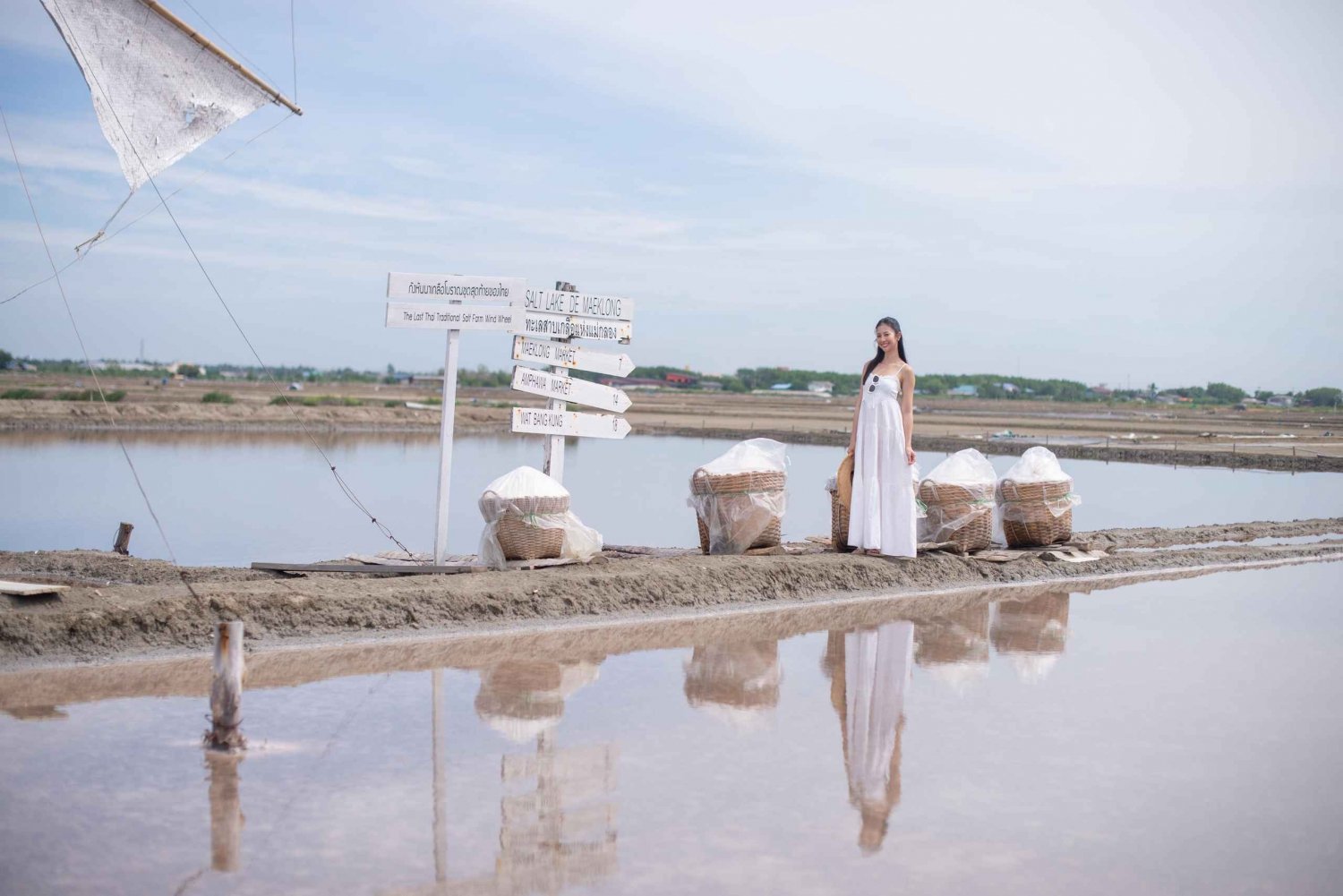 Esplora il mercato galleggiante di Damnoen Saduak e il mercato ferroviario di Maeklong con un tour di un giorno da Bangkok in un tour gastronomico di qualità. Assaggia il Mango Sticky Rice, riconosciuto dalla Michelin, prendi un treno per la stazione ferroviaria più solitaria (Lat Yai) e fai un giro in barca nel mercato galleggiante gustando il Pad Thai. Inizia la giornata con un servizio di prelievo in hotel a Bangkok e gusta una bevanda tradizionale thailandese. Parti da Bangkok e assaggia il Mango Sticky Rice, premiato dalla guida Michelin per sei anni consecutivi. Arriva al mercato ferroviario di Maeklong e assisti allo spettacolare momento dell'arrivo del treno alla stazione. Prendi un treno per la stazione ferroviaria più solitaria (Lat Yai) e scatta delle foto con le insegne in caratteri thailandesi. Raggiungi il molo di Damnoen Saduak e inizia un tour classico esclusivo di 80 minuti in cinque punti di Danonen Saduak con una barca a coda lunga. Gusta il Pad Thai a bordo, assaggiando i sapori dell'Asia. Esplora le autentiche case su palafitte sull'acqua, indisturbato dai rumorosi gruppi turistici. Naviga tra le piccole barche cariche di frutta, dolci e verdure del mercato galleggiante di Damnoen Saduak. Sperimenta le secolari tecniche locali di produzione dello zucchero di cocco utilizzando materiali reperiti in loco presso la Waterfront Old Sugar Factory. Fai un tour del canale principale di Damnoen Saduak, per scoprire le attrazioni più belle del canale. Visita l'elegante Salt Lake De Maeklong Coffee Shop e gusta gli speciali spuntini thailandesi, perfetti da assaggiare e fotografare. Ammira lo sconfinato Lago Salato, dove il cielo azzurro e le nuvole completano la tua presenza e un fotografo di viaggio cattura la tua silhouette indimenticabile. Torna a Bangkok, con soste facoltative al Santuario di Erawan, al Siam Paragon o al mercato notturno JODD FAIRS, per concludere una giornata perfetta.Includes