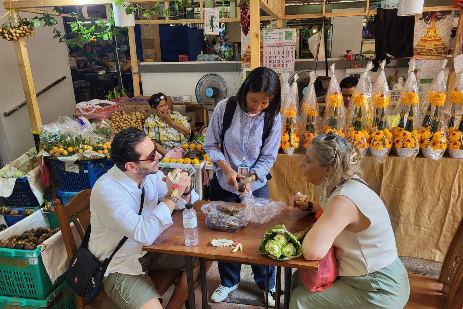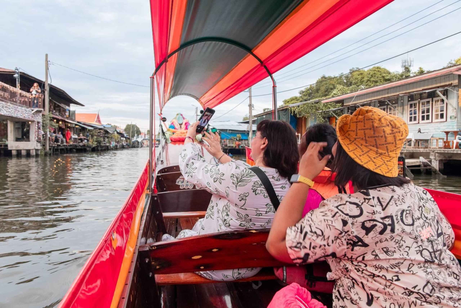 Esplora Bangkok e Thonburi con un giro in tuk-tuk e un tour culturale sull'acqua. Visita le attrazioni principali e le gemme nascoste della città, e scopri la vita acquatica di Bangkok e Thonburi. Incontra la tua guida e l'autista del tuk-tuk alla stazione MRT Itsaraphap, uscita 2. Sali su un tuk-tuk e vai a Wat Hong Ratanaram per vedere un'immagine dorata di Buddha, un tempio popolare a Thonburi. Esplora il patrimonio spirituale e architettonico della città. Il momento clou è l'offerta di gruppo al monaco. Poi, vai a Wat Kalaya e ammira un'enorme immagine di Buddha dei primi tempi di Bangkok. Prosegui verso il mercato galleggiante di Klong Bangluang, una vecchia comunità locale fin dal periodo di Thonburi, e fai un giro in longtail boat per un pranzo locale al mercato. Infine, visita Chinatown e scopri uno dei migliori street food di Bangkok. Scopri la nuova generazione di tendenza per un servizio fotografico a Songwad Road. Termina il tour alla stazione MRT di Wat Mangkon.Includes