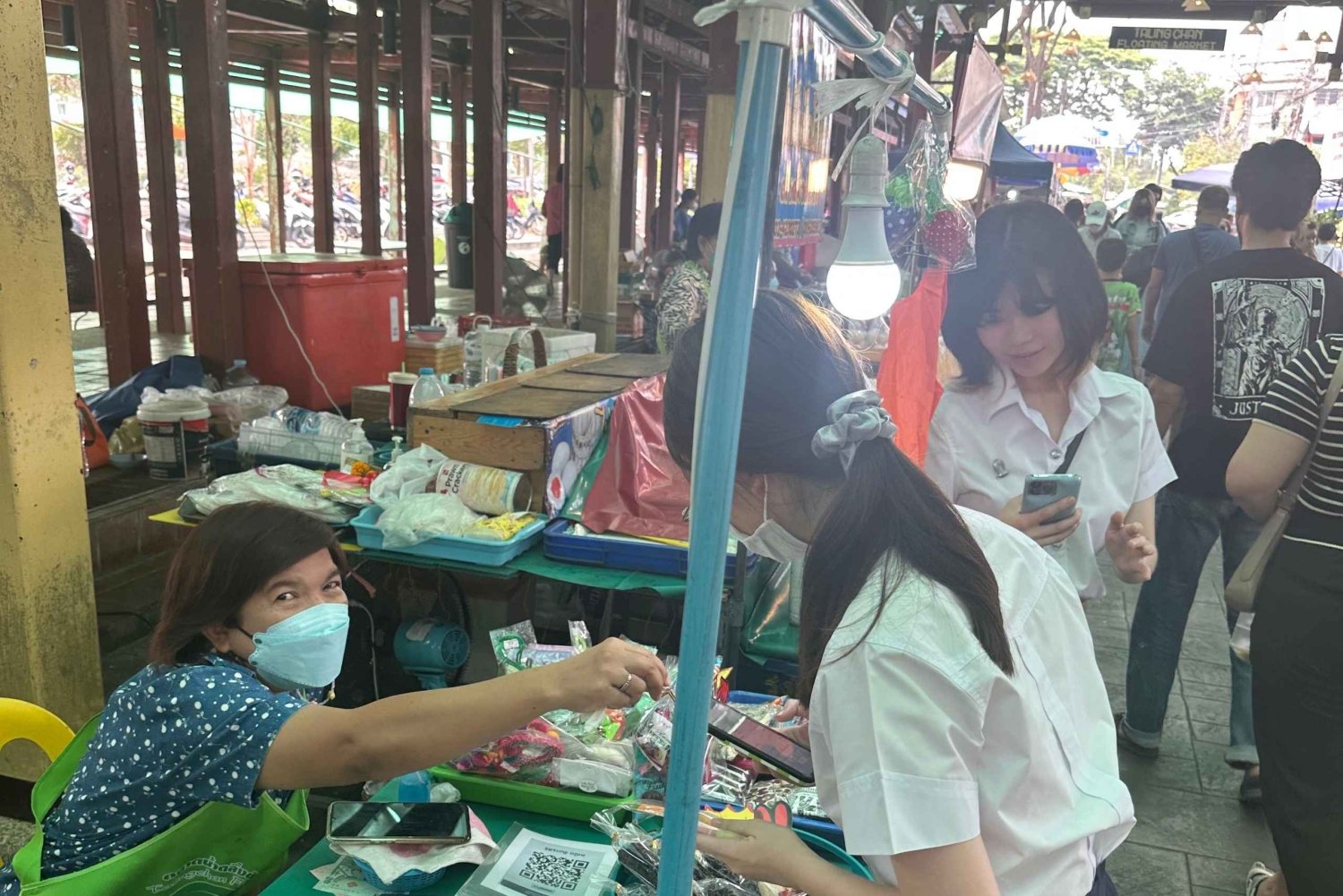 Assaggia cibi thailandesi in formato mignon mentre esplori il vivace mercato galleggiante di Taling Chan. Vivi un'avventura divertente e gustosa con noi!