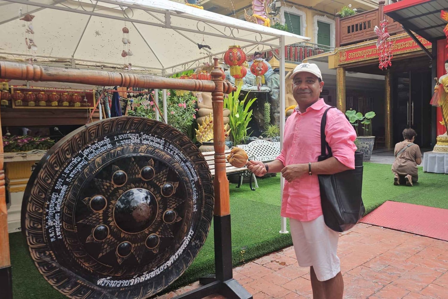Scopri le vivaci strade della Chinatown di Bangkok e l'area circostante con un tour guidato a piedi. Esplora la zona di Talot Noi, ammira il famoso Wat Traimit e passeggia per le vie di Chinatown. Incontra la tua guida nell'area Talot Noi di Bangkok, famosa per i suoi templi (Wats), le sue strade strette e il suo ricco patrimonio cinese. Ammira le case e i vicoli ricoperti di graffiti e ammira il famoso tempio di Wat Traimit, con il suo Buddha d'oro puro. Attraversa la zona chiamata 'Oily Car Parts', dove una strada dopo l'altra è piena di pezzi d'auto che vengono venduti agli abitanti di Bangkok. Ammira l'arte di strada e passeggia per le piccole strade strette. Infine, arriva all'evento principale, Chinatown. Scopri gli incredibili odori, i panorami e il cibo di questo vivace quartiere. Scopri le principali attrazioni di questa fantastica zona di Bangkok con la tua guida.Includes
