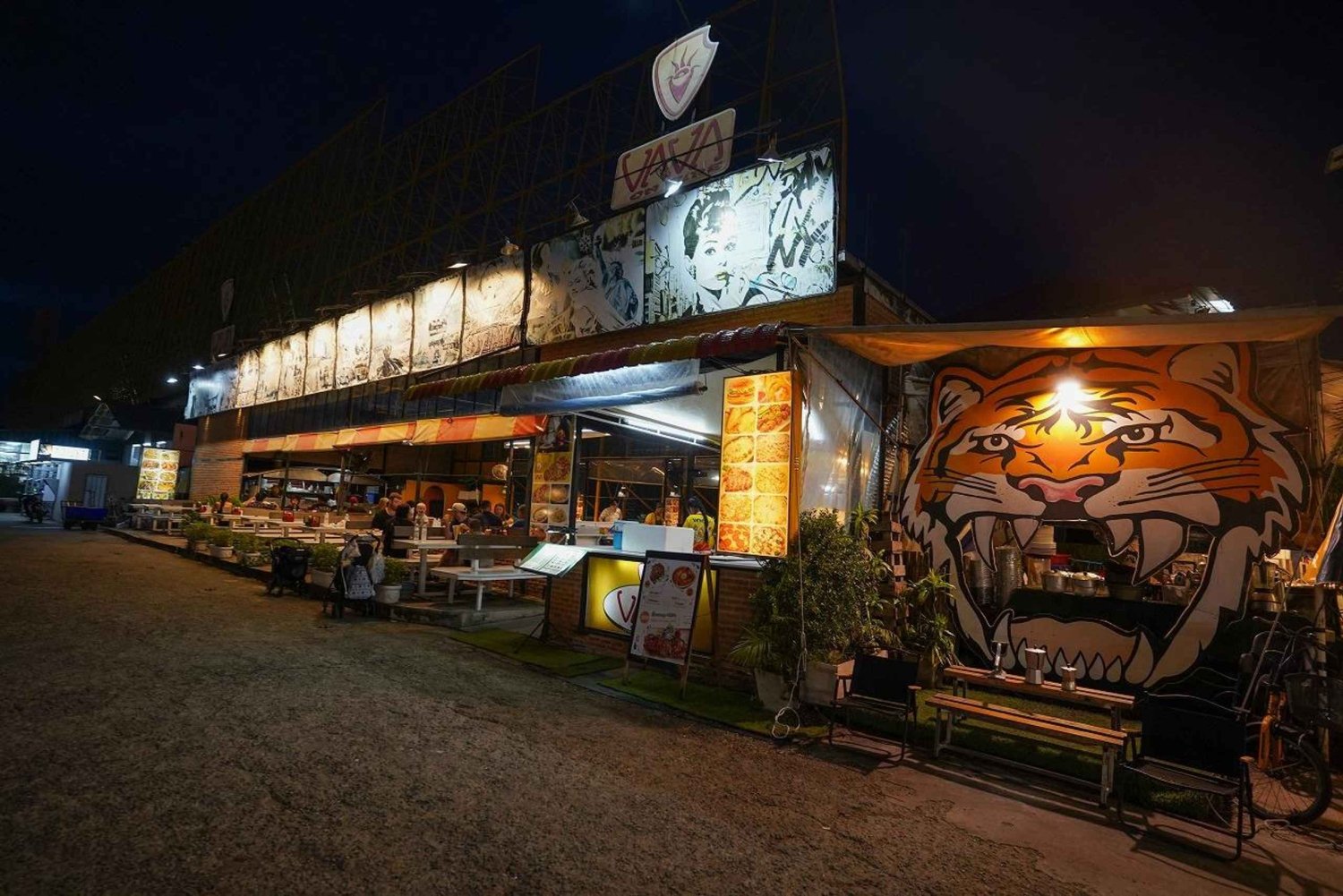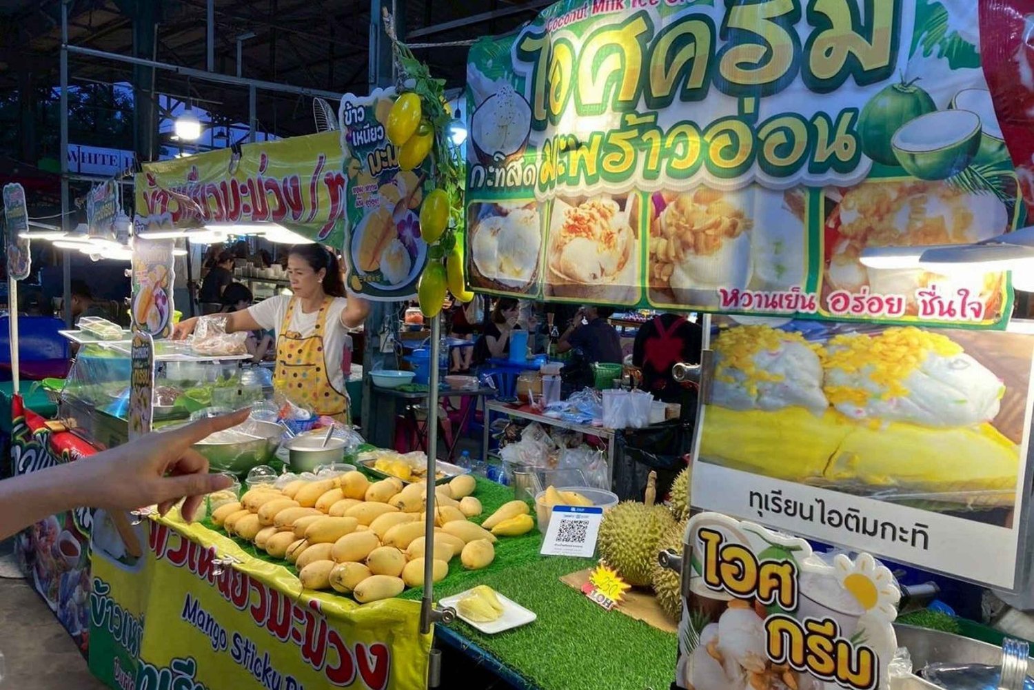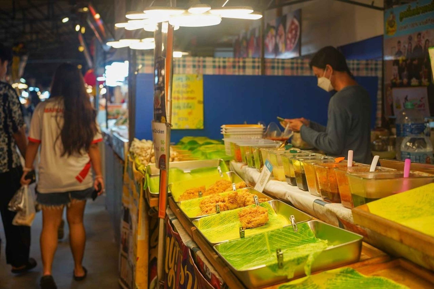 Inizia la tua avventura notturna a Bangkok con un comodo viaggio da BTS Ekkamai a un accogliente ristorante nascosto, premiato dalla Guida Michelin. Lungo il tragitto, la tua simpatica guida locale ti darà un'anteprima divertente della serata che ti aspetta, mentre sfuggi al caos cittadino a bordo di un furgone con aria condizionata. Non preoccuparti di perderti nel traffico di Bangkok: ci pensiamo noi, così puoi rilassarti e goderti la serata. Questo inizio tranquillo dà il via a una serata piena di sapori, panorami e ricordi. In un ristorante thailandese accogliente e intimo, gusta una serie di piatti locali amati come il piccante Som Tum (insalata di papaya), il ricco Tom Yum Goong (zuppa di gamberi piccante e acida) e le tenere creazioni di maiale e gamberi che un tempo erano onorate dalla Guida Michelin. Accompagnata da una bevanda rinfrescante, questa cena ti fa scoprire il gusto autentico di Bangkok in un ambiente comodo e senza fronzoli. Dopo cena, segui la guida fino al leggendario Talad Rot Fai Srinakarin, il mercato notturno in stile retrò più cool di Bangkok. Avrai tempo per esplorare le bancarelle piene di moda vintage, oggetti d'antiquariato stravaganti, artigianato fatto a mano e street food irresistibile. L'atmosfera è elettrica ma rilassata, perfetta per curiosare, chiacchierare e godersi la notte come un vero locale. Che tu stia scattando foto da Instagram, cercando oggetti rari o semplicemente godendoti la musica e le luci, questo mercato iconico è il modo perfetto per concludere una serata indimenticabile. Per finire, goditi un secondo drink e qualche snack locale in un bar accogliente alla fine del mercato. Rilassati e goditi la serata con la tua guida e gli altri ospiti.Includes