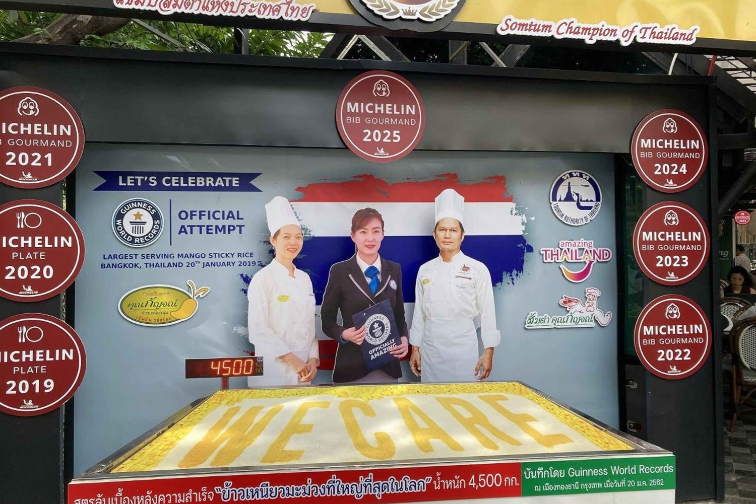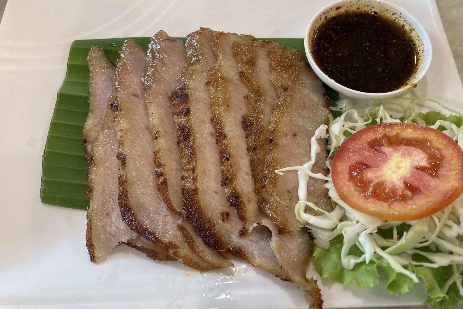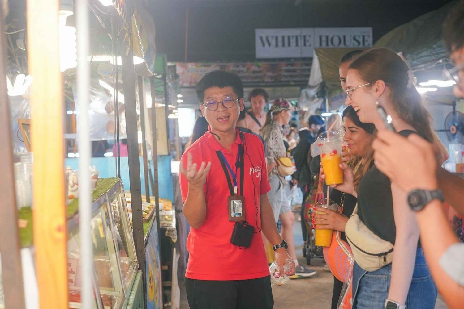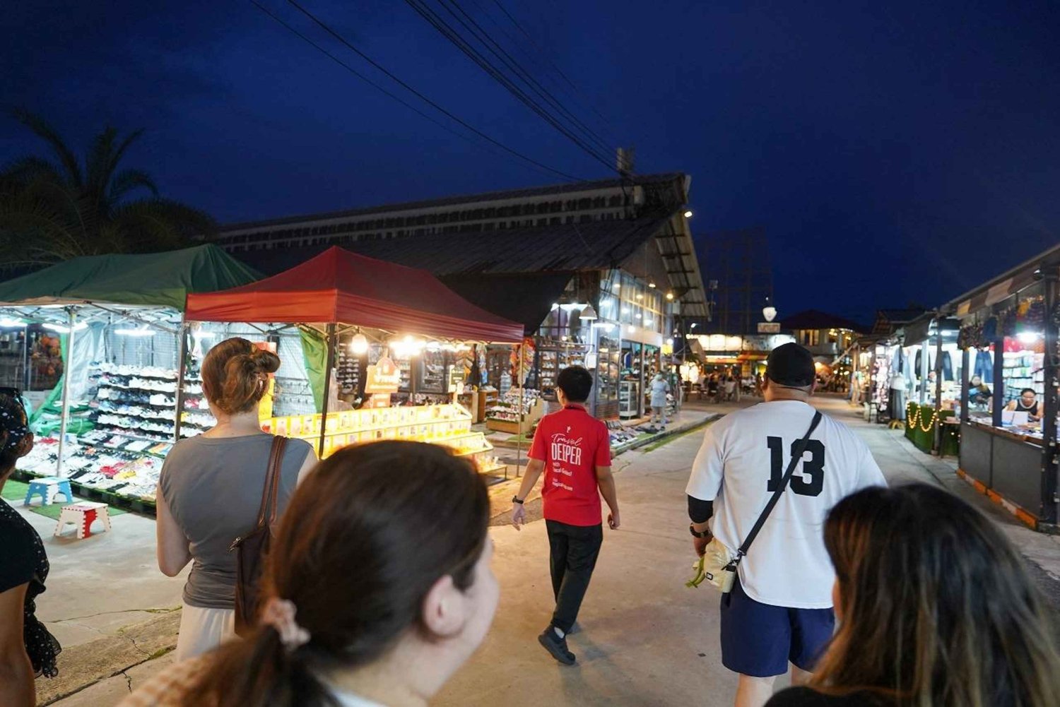 Inizia la tua avventura notturna a Bangkok con un comodo viaggio da BTS Ekkamai a un accogliente ristorante nascosto, premiato dalla Guida Michelin. Lungo il tragitto, la tua simpatica guida locale ti darà un'anteprima divertente della serata che ti aspetta, mentre sfuggi al caos cittadino a bordo di un furgone con aria condizionata. Non preoccuparti di perderti nel traffico di Bangkok: ci pensiamo noi, così puoi rilassarti e goderti la serata. Questo inizio tranquillo dà il via a una serata piena di sapori, panorami e ricordi. In un ristorante thailandese accogliente e intimo, gusta una serie di piatti locali amati come il piccante Som Tum (insalata di papaya), il ricco Tom Yum Goong (zuppa di gamberi piccante e acida) e le tenere creazioni di maiale e gamberi che un tempo erano onorate dalla Guida Michelin. Accompagnata da una bevanda rinfrescante, questa cena ti fa scoprire il gusto autentico di Bangkok in un ambiente comodo e senza fronzoli. Dopo cena, segui la guida fino al leggendario Talad Rot Fai Srinakarin, il mercato notturno in stile retrò più cool di Bangkok. Avrai tempo per esplorare le bancarelle piene di moda vintage, oggetti d'antiquariato stravaganti, artigianato fatto a mano e street food irresistibile. L'atmosfera è elettrica ma rilassata, perfetta per curiosare, chiacchierare e godersi la notte come un vero locale. Che tu stia scattando foto da Instagram, cercando oggetti rari o semplicemente godendoti la musica e le luci, questo mercato iconico è il modo perfetto per concludere una serata indimenticabile. Per finire, goditi un secondo drink e qualche snack locale in un bar accogliente alla fine del mercato. Rilassati e goditi la serata con la tua guida e gli altri ospiti.Includes