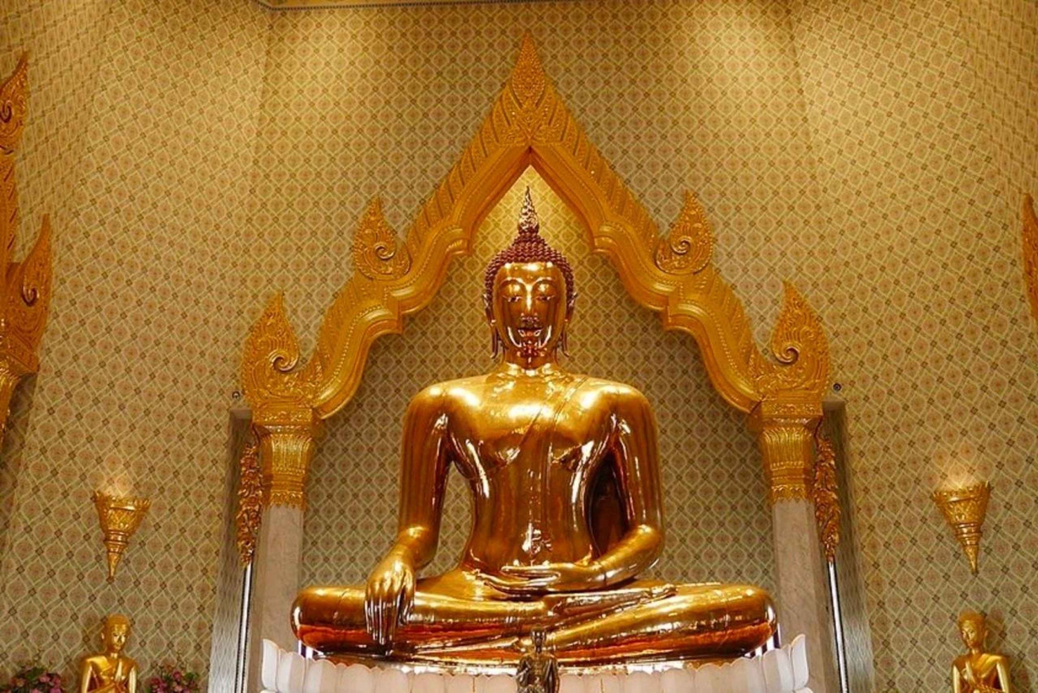 Tour guidato: Le gemme nascoste di Bangkok - Wat Ratchanatdaram, Golden Mount e Wat Trai Mit. Durata del tour: 6 ore Prelievo: Dal tuo hotel a Bangkok Rientro: Ovunque a Bangkok (Supplemento di 500 Baht per un ulteriore servizio di prelievo e rientro) **Il prezzo include**: Biglietti d'ingresso, guida turistica, veicolo con aria condizionata. **Itinerario 1. **Monte d'Oro (Wat Saket)** Visita il Monte d'Oro, un importante tempio in cima a una collina che offre una vista panoramica di Bangkok. La salita è ornata da splendidi giardini e decorazioni intricate, che rendono la scalata piacevole e gratificante. In cima, potrai ammirare una vista mozzafiato sulla città e scoprire la ricca storia del tempio. 2. **Wat Ratchanatdaram** L'elegante Wat Ratchanatdaram, noto per il suo splendido Loha Prasat (Castello di Metallo). Questo tempio unico presenta 37 guglie di metallo e dettagli intricati che riflettono la bellezza dell'architettura thailandese. Esplora i suoi dintorni sereni e scopri il suo significato storico grazie alla tua guida. 3. **Wat Trai Mit (Tempio del Buddha d'oro)** Concludi il tuo tour al Wat Trai Mit, che ospita la più grande statua di Buddha in oro massiccio del mondo. Questa magnifica statua di 5,5 tonnellate è un capolavoro di arte e devozione. Ammira la sua superficie scintillante e scopri la sua affascinante storia e la sua importanza culturale. Goditi un viaggio confortevole in un veicolo con aria condizionata per tutta la durata del tour. Questa esperienza promette un'immersione profonda nelle attrazioni meno conosciute ma altrettanto affascinanti di Bangkok.Includes