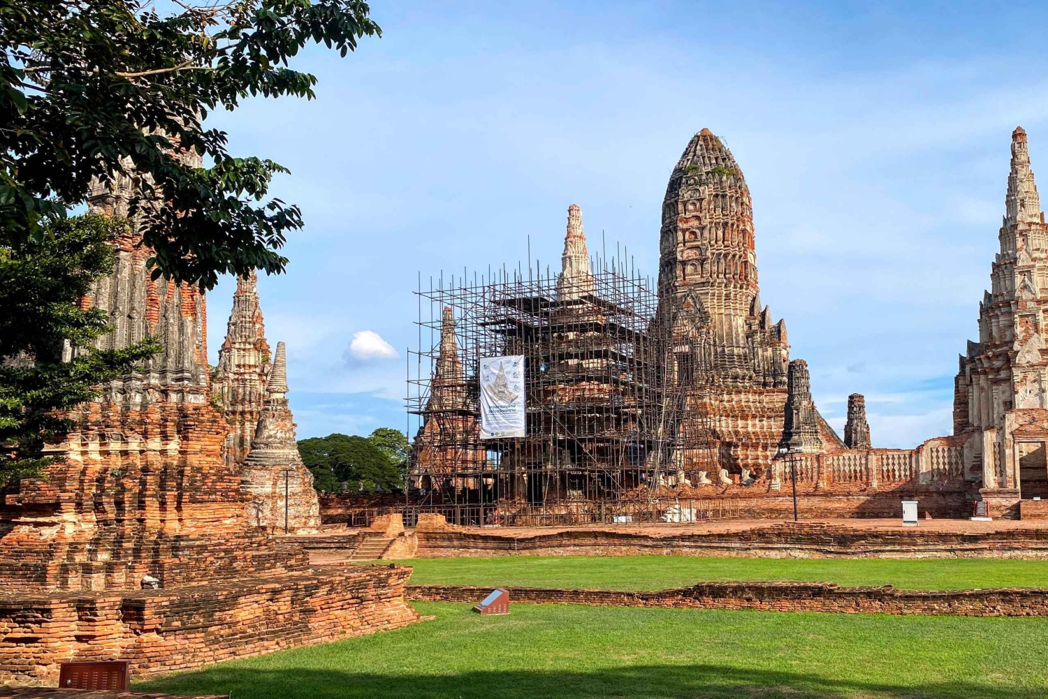 Parti per un viaggio affascinante attraverso l'antico splendore di Ayutthaya, l'antica capitale del Siam! Questo tour ti farà sentire come se fossi tornato indietro nel tempo, mentre esplori le affascinanti rovine di questo sito patrimonio mondiale dell'umanità UNESCO. Punti salienti: 1. Passeggia nel maestoso Wat Phra Si Sanphet, un tempo il complesso templare più grande di Ayutthaya, e ammira i tre imponenti chedi. 2. Scopri la bellezza serena del Wat Yai Chaimongkol, famoso per i suoi intricati murales e l'impressionante statua del Buddha sdraiato. 3. Esplora l'enigmatico Wat Mahathat, dove una testa di Buddha intrecciata con le radici di un albero è un simbolo commovente della resilienza della città. 4. Visita l'affascinante Palazzo Reale di Bang Pa-In, un mix di stili architettonici thailandesi, europei e cinesi. 5. Goditi un pranzo tradizionale thailandese in un ristorante locale, assaporando i sapori autentici.Includes