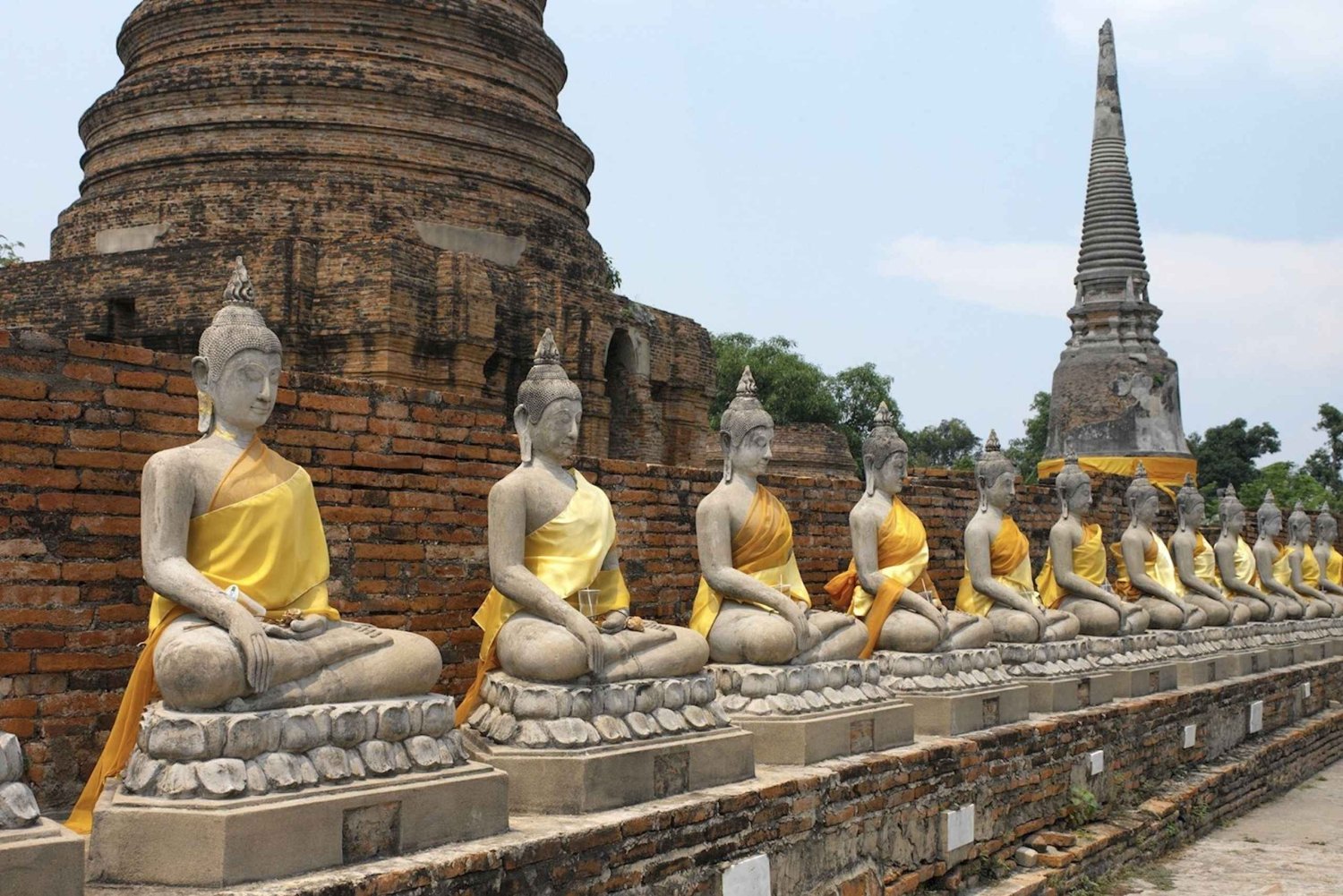 ガイド付きまたはセルフガイドの寺院ツアーで、アユタヤ県の古代寺院を巡ります。ホテル(早朝)からピックアップ後、約1時間かけてアユタヤ県へ移動し、最初にバンパイン宮殿に立ち寄ります。美しい宮殿を鑑賞した後、プラナコーン・シー・アユタヤ県の中心部へ移動します。 市のランドマークの一つであるワット・ヤイ・チャイ・モンコルを訪れます。この寺院は、スリランカのプラ・ワナラタナテン僧院で得度し訓練を受けた僧侶のために1357年に建設されました。訪問後、近くのタイレストランで昼食を取ることができます。 次に、王族専用に建設された数十の建物からなるワット・プラ・シー・サンペットへ。3つの大きな優雅な鐘形のパゴダが、高台の上に立っています。ワット・プラ・シー・サンペットの隣にあるヴィハーン・プラ・モンコルボピットには、巨大な仏像が安置されています。マーラを制圧する姿勢の金箔を施した青銅製の仏像は、高さ40フィートです。 次に、かつて仏舎利が安置され、仏教の最高指導者の座であったワット・マハタートへ向かいます。ほとんどの訪問者は、木の根に囲まれた仏頭像を見にここを訪れます。 その後、アユタヤで最も印象的な寺院の一つであるクメール様式のワット・チャチワッタナラムを訪れます。この寺院は、チャオプラヤ川を挟んだ歴史的島の南西角の向かいに位置しています。寺院へのオプションのボートツアーでは、大規模でよく保存された寺院の美しい景色を楽しむことができます。その後、車に戻り、バンコク市内のホテルへ戻ります。Includes