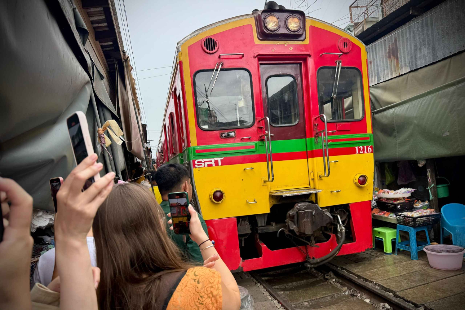 - これらの目的地は、傘を折りたたむ市場を列車が通過するユニークな光景と、ボートから商品を売る活気ある販売者たちで、非常に観光地化されています。 私たちの目標は、地元の田園風景と活気ある観光スポットの両方を、1つのツアーで体験できる観光体験を提供することです。 現金をお持ちいただくことを強くおすすめいたします。ほとんどの露店では、カード決済時に5%の手数料が追加されます。 ガイドは英語のみ対応しております。ただし、世界中のお客様が体験を楽しんでいただけるよう、28言語対応のマルチリンガルオーディオガイドをご用意しております。 タイは特に日中は非常に暑くなります。帽子、サングラス、日焼け止め、小型の傘、さらには携帯用ミニファンなど、ツアー中快適に過ごせるよう、持ち物にご用意いただくことを強くおすすめいたします。 列車が市場を数センチの距離で通過する瞬間を体験してください。 ツアーは、急かされることなく、ゆったりとしたペースで設計されています。