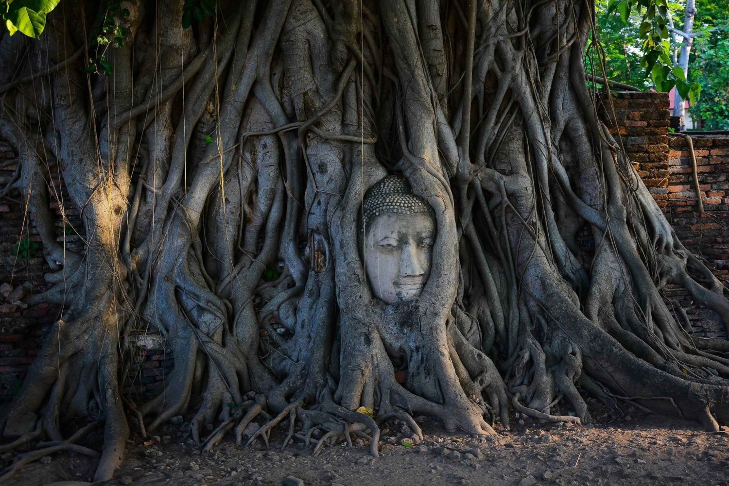地元のレストランで昼食休憩を取り、本格的なタイ料理を味わってください。昼食後は、ガジュマルの根に絡まった仏頭で有名なワット マハタートに向かいます。遺跡を探索し、ガイドから寺院の重要性と歴史について学びます。