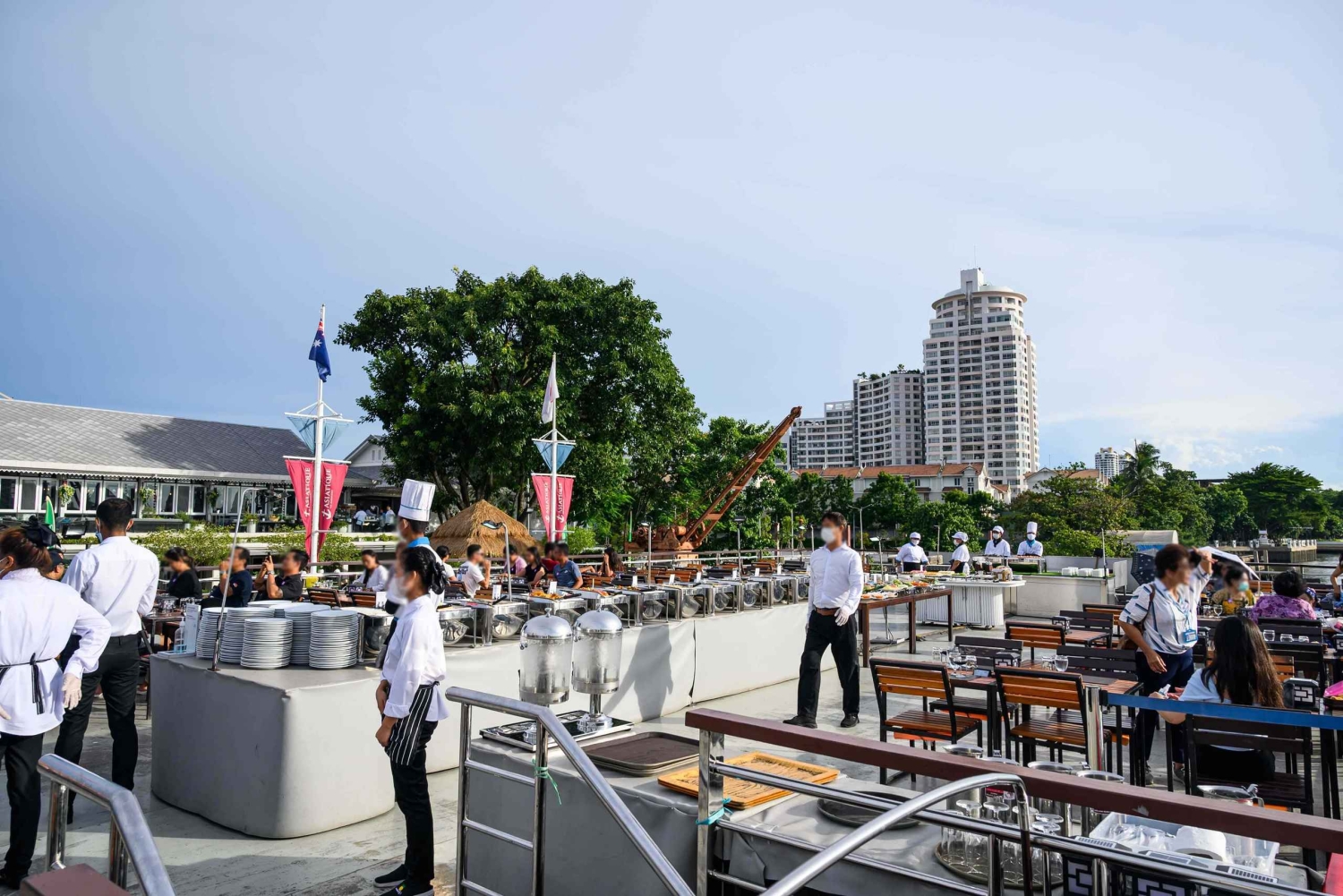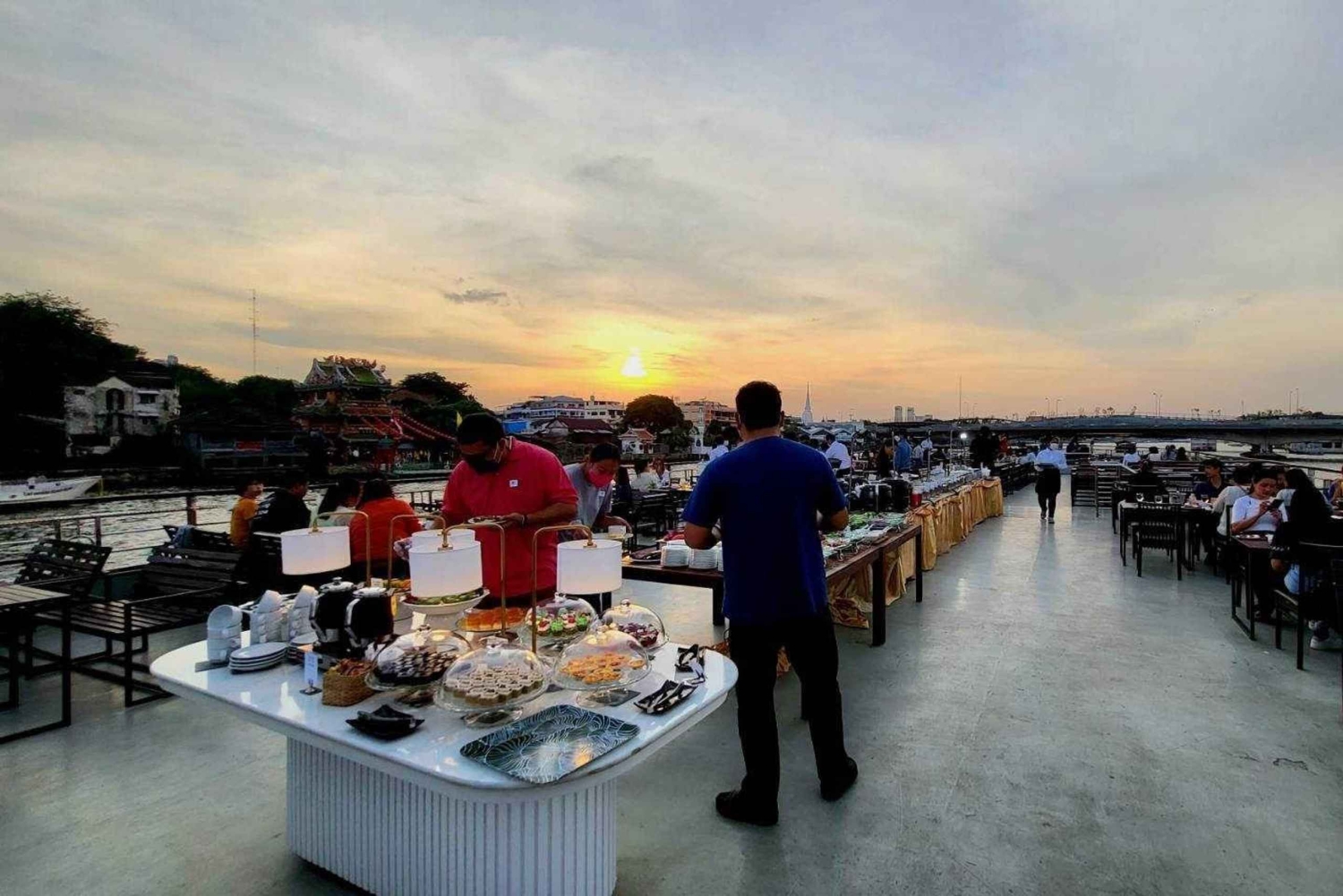チャオプラヤー川からバンコクの鮮やかな光を眺めましょう。王宮やワット・ポーなどの象徴的なランドマークを通り過ぎながら、ウェルカムドリンク、紅茶、コーヒー、ビュッフェディナーをお楽しみください。