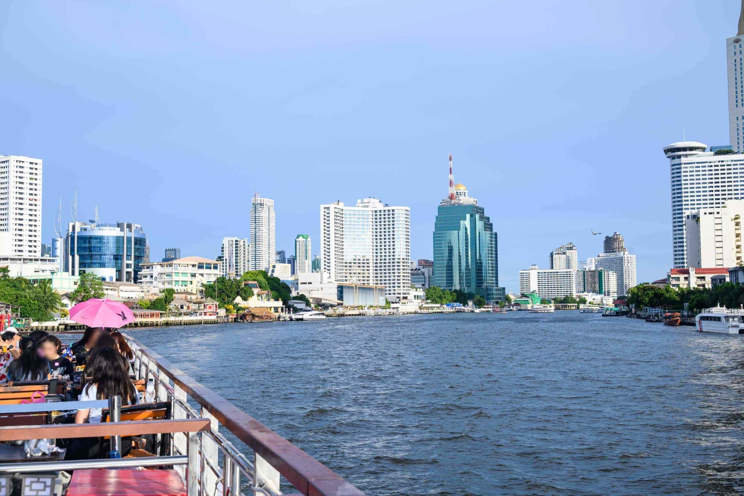 - チャオプラヤー川からバンコクのライトアップされたランドマークを眺める