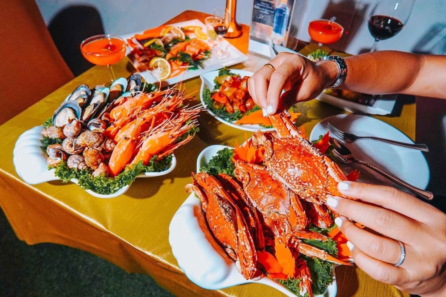 ホテルへの送迎(オプションを選択した場合) ウェルカムタイ古典舞踊 シーフードと各国料理のビュッフェディナーとデザート ライブミュージックとショーImportant Information