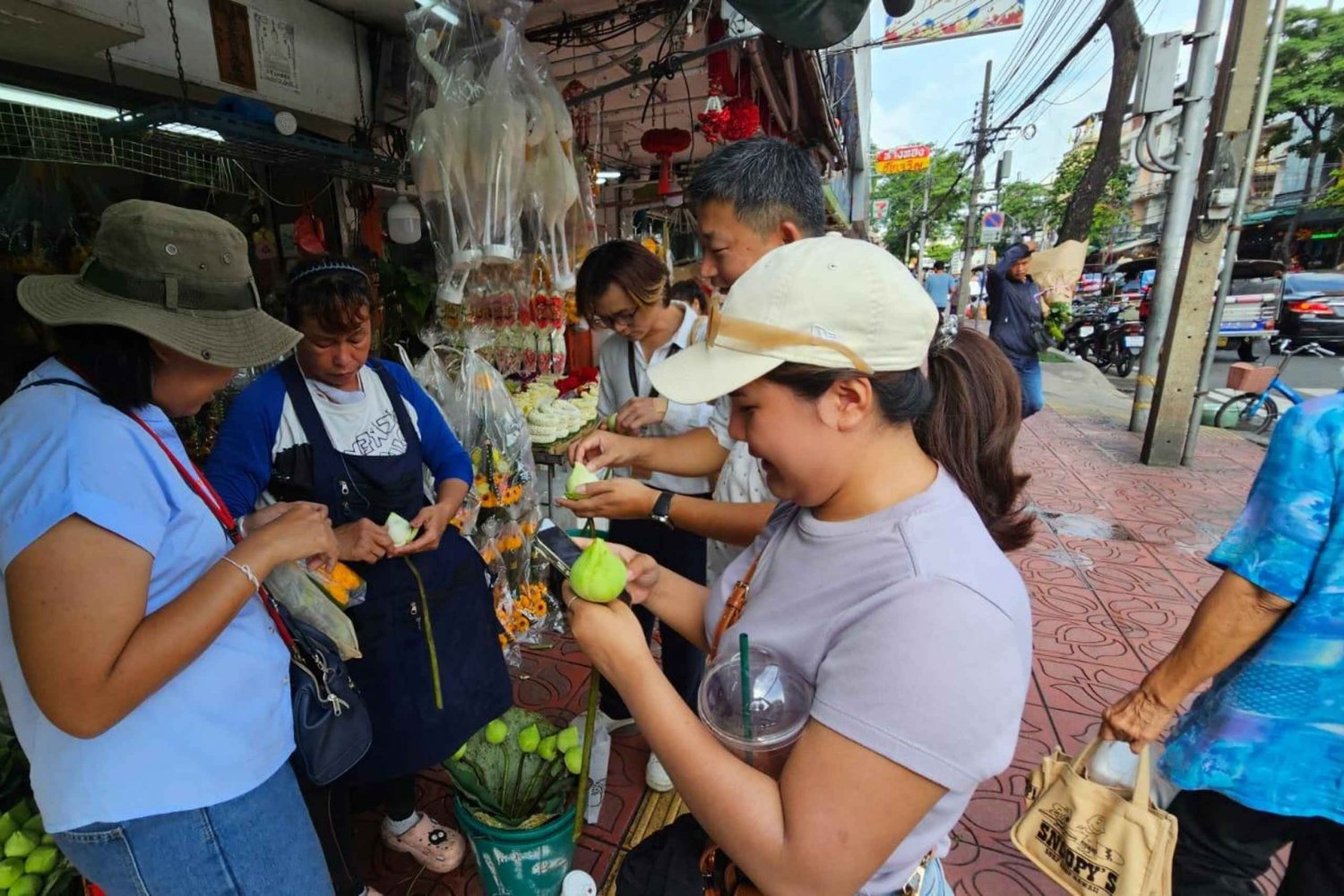 E-トゥクトゥク ツアーでバンコクの最高の場所を発見してください。大理石寺院、金属城、巨大ブランコを訪れてください。活気のある花市場を探索してください。 MRT サナム チャイ駅でガイドに会い、バンコク最大の花市場である賑やかなパク クロン タラートから冒険を始めましょう。色とりどりの花と香りのよいハーブの見事な展示に浸ってください。色とりどりの花を鑑賞し、写真を撮ることができます。 トゥクトゥクに乗り、大理石寺院としても知られるワット ベンチャマボピットを訪問し続けます。寺院の精巧な彫刻とデザインを鑑賞してください。 ロハ プラサート (金属城) としても知られるワット ラチャナダを訪れ、頂上まで登って街のパノラマ ビューを楽しみましょう。正面に巨大な赤いブランコがある寺院、ワット スタットに向かいます。 通過: バンコクの活気あるチャイナタウンへの入り口であるチャイナ ゲート。この地域の重要性と、タイの中国系コミュニティの豊かな文化遺産について学びましょう。 ツアーは、建築の融合の見事な例である歴史的なフアランポーン駅で終了します。ガイドがバンコクとタイのさまざまな地域を結ぶ交通ハブとしての歴史と重要性について語りながら、その壮大なファサードと精巧なディテールを鑑賞してください。 その後、MRTフアランポーン駅に降ろされます。 **フードツアーもあります。このツアーの後にGet Your Guideを通じて追加のツアーを予約して、フードツアーに参加できます** https://www.getyourguide.com/bangkok-l169/bangkok-authentic-10-testing-food-tour-t766203/?preview=GBDOBNHGXWPBOV6MBWG1Q1MUA8CZRUKCIncludes