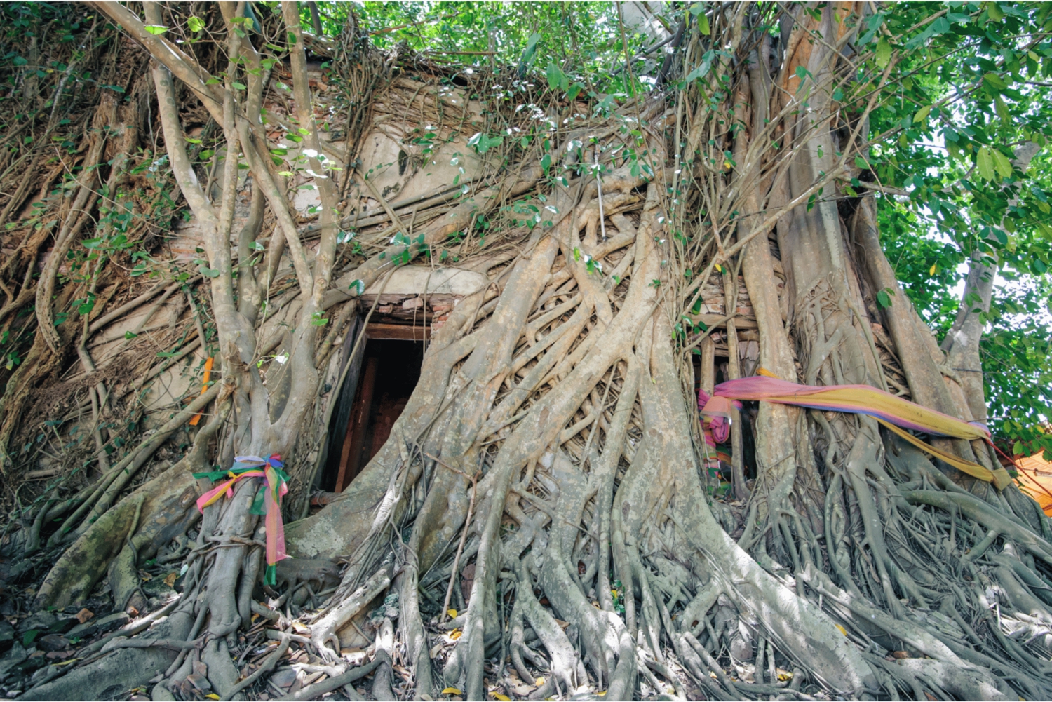 - Bezoek Wat Bang Kung, om de wijdingshal te bekijken die is ingekapseld in de oude wortels