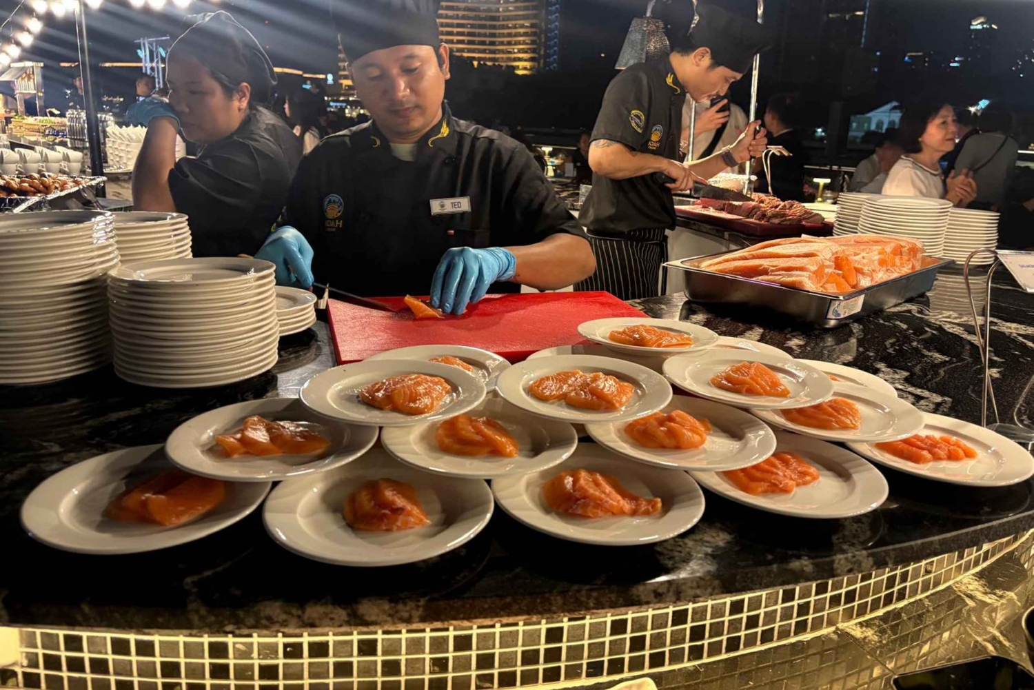 7 ReviewsLuxe diner met Noah's nieuwste 5-sterren cruise langs de Chao Phraya rivier. Geniet van een uitgebreid internationaal buffet en zeevruchtenbuffet, live muziek en Thaise culturele shows, en een prachtig nachtelijk uitzicht op de Rama VIII-brug.