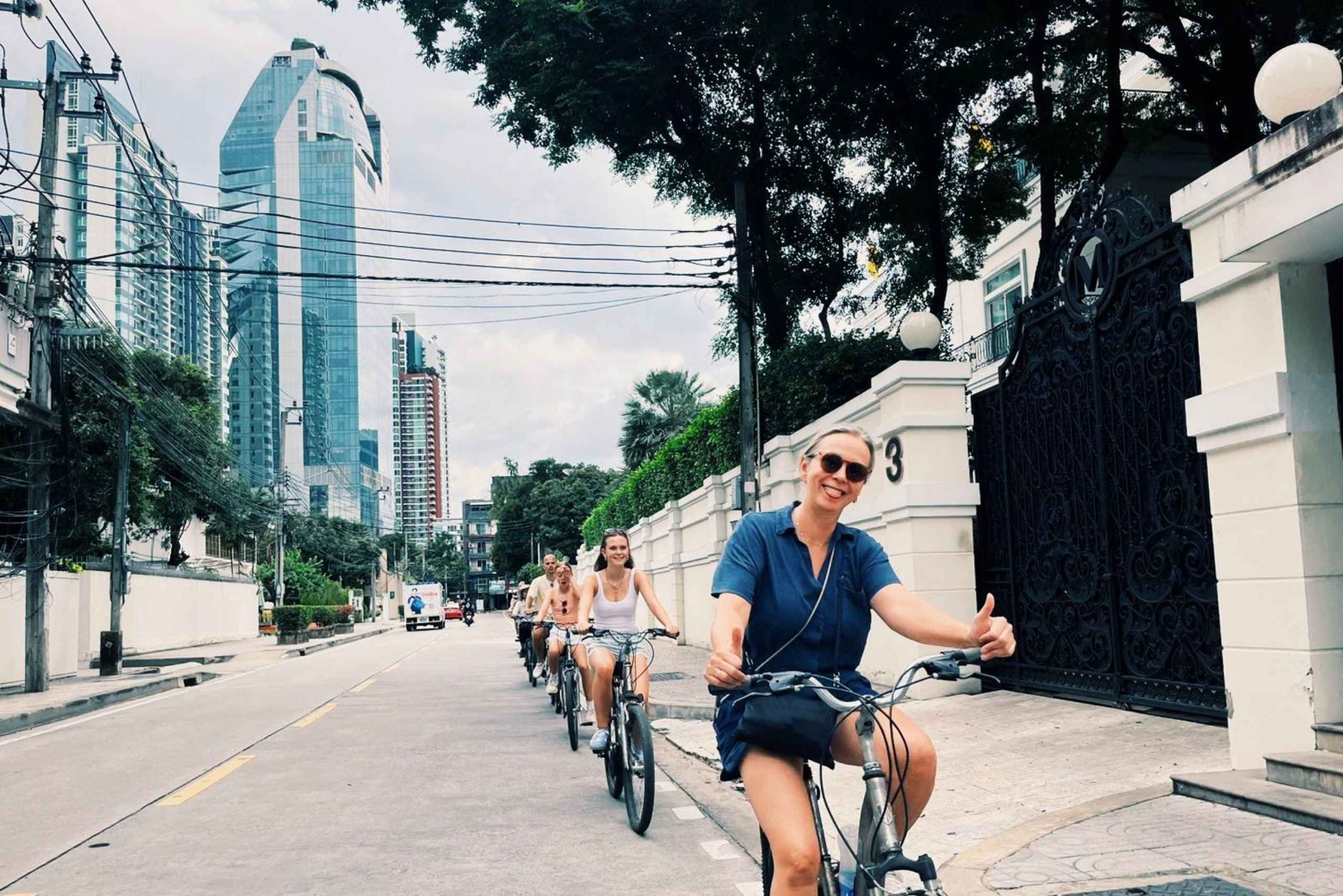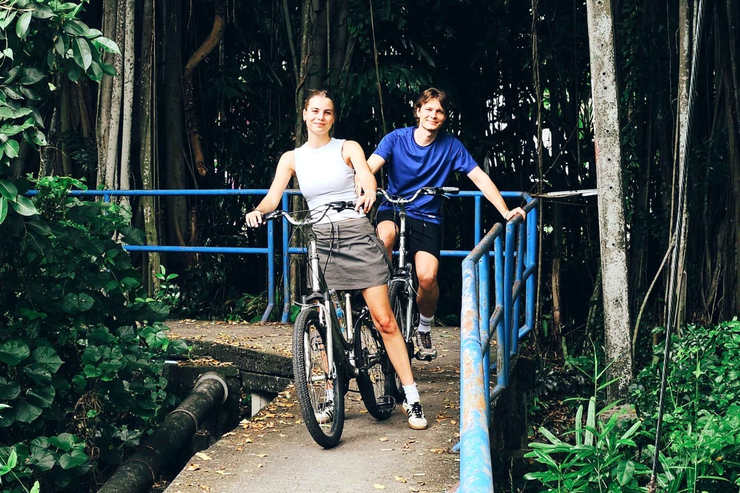 Begin je fietstocht in de ochtend met een verkenning van de verborgen steegjes van Bangkok, ver weg van de gebruikelijke toeristische trekpleisters. Tijdens het fietsen zie je een lokale markt en traditionele wijken, waardoor je een goed beeld krijgt van de cultuur van de stad. Je steekt de Chao Phraya-rivier over met een traditionele veerboot, met een prachtig uitzicht op de skyline van Bangkok. Eenmaal aan de andere kant fiets je door het groene hart van de stad, over verhoogde paden en langs rustige plantages. Je professionele gids vertelt je interessante verhalen en weetjes over de omgeving, waardoor de tour zowel leuk als leerzaam is. Na te hebben genoten van de rust en schoonheid van het groene gebied, keer je terug naar de stad en eindig je de tour op het startpunt. Deze tour biedt een perfecte mix van stadsleven, natuur en ontspanning.Includes