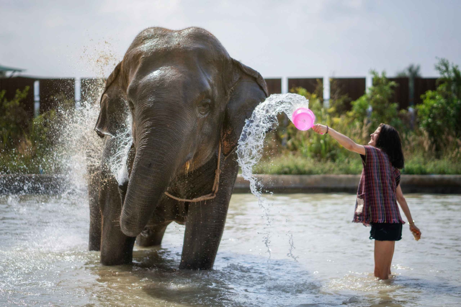 - Voel het plezier van het baden van de dieren, begeleid door ervaren olifantenverzorgers