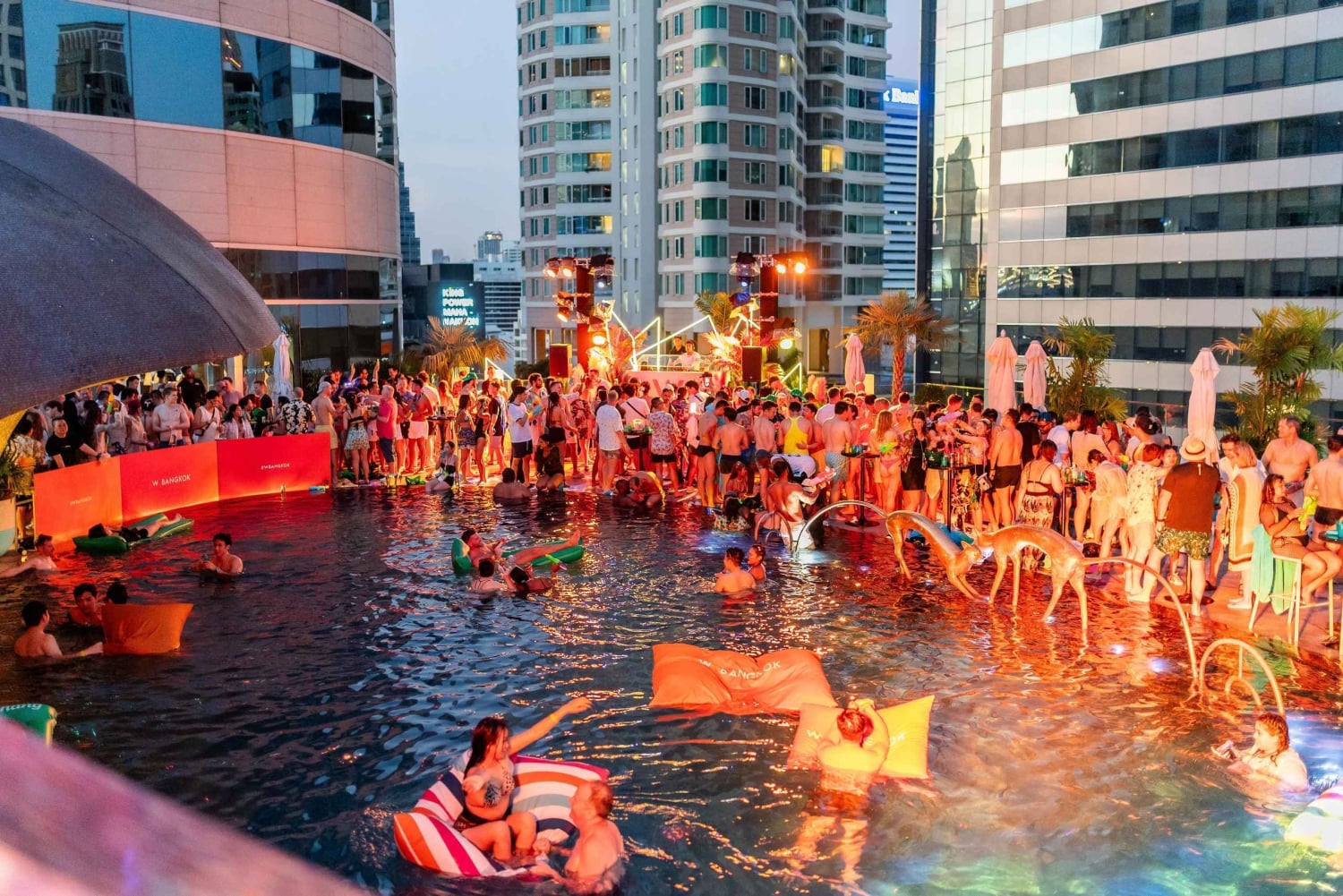 - Het evenement vindt plaats in W Bangkok - Wet Deck op de 6e verdieping. Verwacht een levendige mix van stijlvolle locals, expats, influencers, toeristen en toeschouwers. Energiek hiphop van Bangkok Invaders tijdens de Sunset Splash Pool Party. Deep house, elektronische muziek en chill sunset grooves tijdens speciale evenementen met internationale dj's.