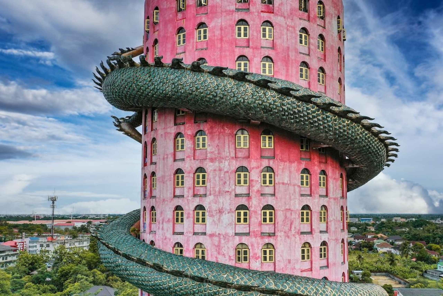 - Ontdek de iconische Wat Samphran, een tempel met een gigantische drakenbeeld.