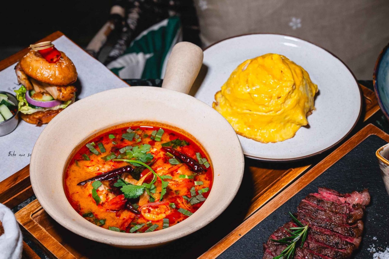 ESCAPE Bangkok ligger på toppen av EmQuartier og er et takterrasse-mål hvor stil møter raffinement. Omgitt av frodig tropisk innredning og panoramautsikt over skyline, inviterer dette elegante urbane tilfluktsstedet deg til å slappe av, koble av og heve din matopplevelse. Stedet blander strandklubb-stemning med byens eleganse – perfekt for solnedgangscocktailer, romantiske middager eller helgetreff. F&B-pakkene på ESCAPE Bangkok er nøye sammensatt for å passe til enhver stemning og anledning. Velg mellom et bredt utvalg av håndlagde cocktailer, fine viner eller premium-brennevin, kombinert med gourmet-tapas og moderne fusjonsretter. Enten du har lyst på fersk sjømat, saftig grillet kjøtt eller håndlagde småretter å dele, er hver pakke designet for nytelse og glede. Forvent en avslappet, men likevel luksuriøs atmosfære forsterket av live DJ-sett, koselige salonger og fantastisk service. Fra solnedgang til nattens frembrudd tilbyr ESCAPE en sømløs blanding av atmosfære, smak og stil – noe som gjør det til et must-visit takterrasse i Bangkok. Enten du planlegger en date, bursdagsfeiring eller bare en uformell kveld med venner, lover ESCAPE Bangkoks F&B-pakker en minneverdig opplevelse over byen.Includes