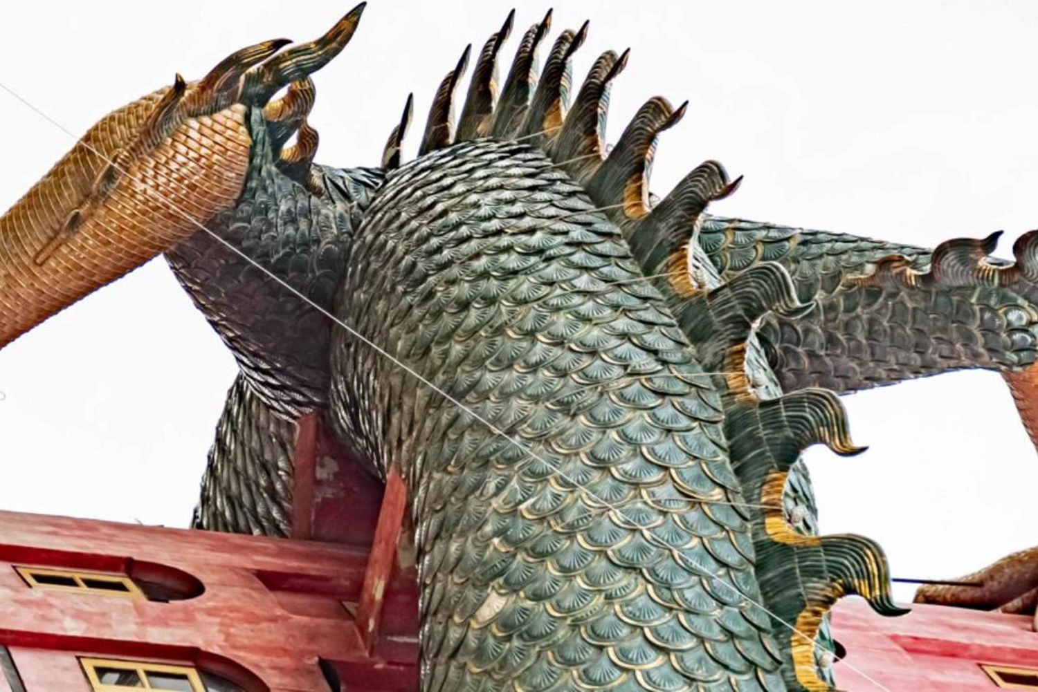 Unnslipp travle Bangkok og begynn på et kulturelt eventyr til tre av Thailands mest fascinerende destinasjoner. Begynn reisen på Maeklong Railway Market, et unikt marked bygget langs en aktiv jernbanelinje. Se med ærefrykt på hvordan selgerne raskt trekker tilbake bodene sine like før toget passerer, et utrolig syn som viser thailandske tilpasningsevne og lokale tradisjoner. Deretter besøker du den verdensberømte flytende markedet Damnoen Saduak, hvor selgerne padler i trebåter fylt med ferske råvarer, lokale snacks og håndlagde suvenirer. Ta en båttur gjennom de travle kanalene, smak på tropiske frukter og fordyp deg i den livlige atmosfæren på Thailands mest berømte flytende marked. Avslutt reisen med et besøk til den fantastiske Wat Samphran, også kjent som Dragetemplet. Denne skjulte perlen har et slående rosa sylindrisk tempel omgitt av en massiv drageskulptur. Klatre inn i dragens kropp for å nå toppen, hvor du vil bli belønnet med panoramautsikt og en rolig atmosfære som er perfekt for refleksjon. Med praktisk transport, en ekspertguide og mange fotomuligheter, tilbyr denne turen et uforglemmelig innblikk i Thailands unike kultur, historie og åndelige arv.Includes