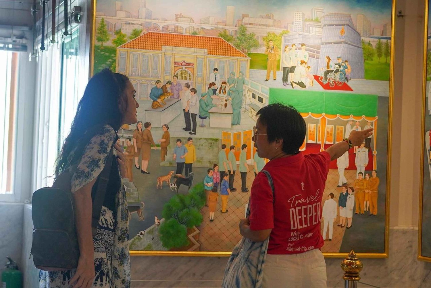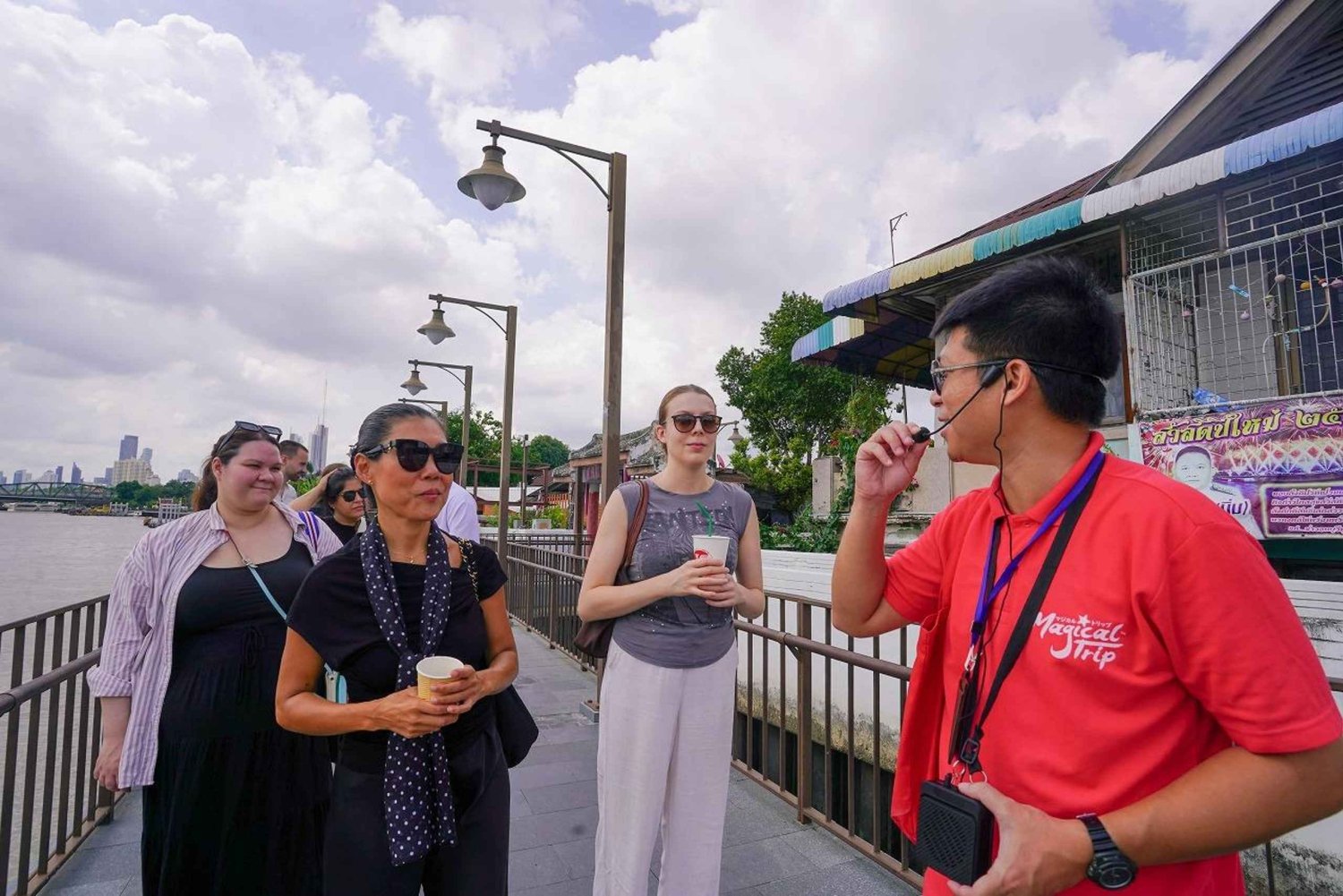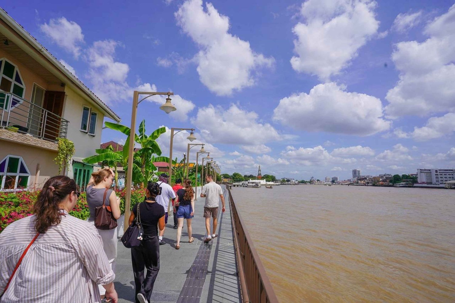 Wycieczkę rozpocznij od wizyty w kościele Santa Cruz, pięknej nadrzecznej świątyni inspirowanej kulturą portugalską. Przejdź się wioską Kudichin, napij się herbaty lub kawy i spróbuj tradycyjnych portugalskich deserów, poznając jednocześnie wyjątkową historię tego miejsca. Następnie wybierz się na malowniczy rejs wycieczkowy po ukrytych kanałach Bangkoku ekologicznym łodzią elektryczną. Zrelaksuj się przy darmowych napojach, podziwiając spokojne świątynie, bujne nadrzeczne osady i tętniące życiem lokalne społeczności. Wejdź do świętej elegancji Wat Pak Nam, gdzie znajduje się zapierająca dech w piersiach biała pagoda i złote posągi Buddy, które łączą stare wierzenia z nowoczesnym blaskiem. Odkryj tętniące życiem centrum sztuki ulicznej, ukryte kawiarnie i kreatywne dusze w Artist Village. Wędruj wąskimi uliczkami pełnymi kolorów i ciesz się spontanicznymi występami w tym niecodziennym zakątku kultury. Na lunch skosztuj smacznych tajskich potraw w uroczej restauracji Artist House nad rzeką Menam. Po posiłku poświęć chwilę na podziwianie małych drewnianych obrazów i obejrzyj różnorodne unikalne dzieła sztuki lokalnej. Będziesz mieć również trochę wolnego czasu na samodzielne zwiedzanie — idealny moment na zakup pamiątek lub skosztowanie słodkich przysmaków.Includes